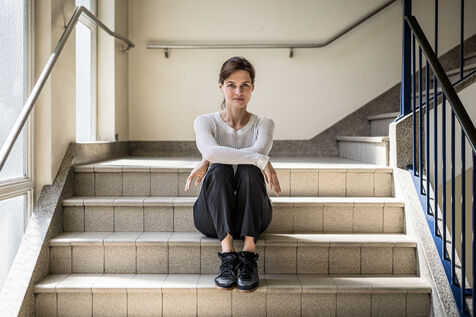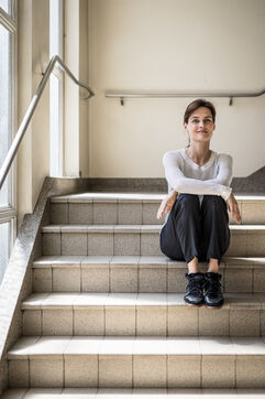 Namur, Belgium. 2023-08-21. Portrait of Caroline de Mulder, Belgian author and novelist at the Faculty of Philosophy and Letters in Namur.
