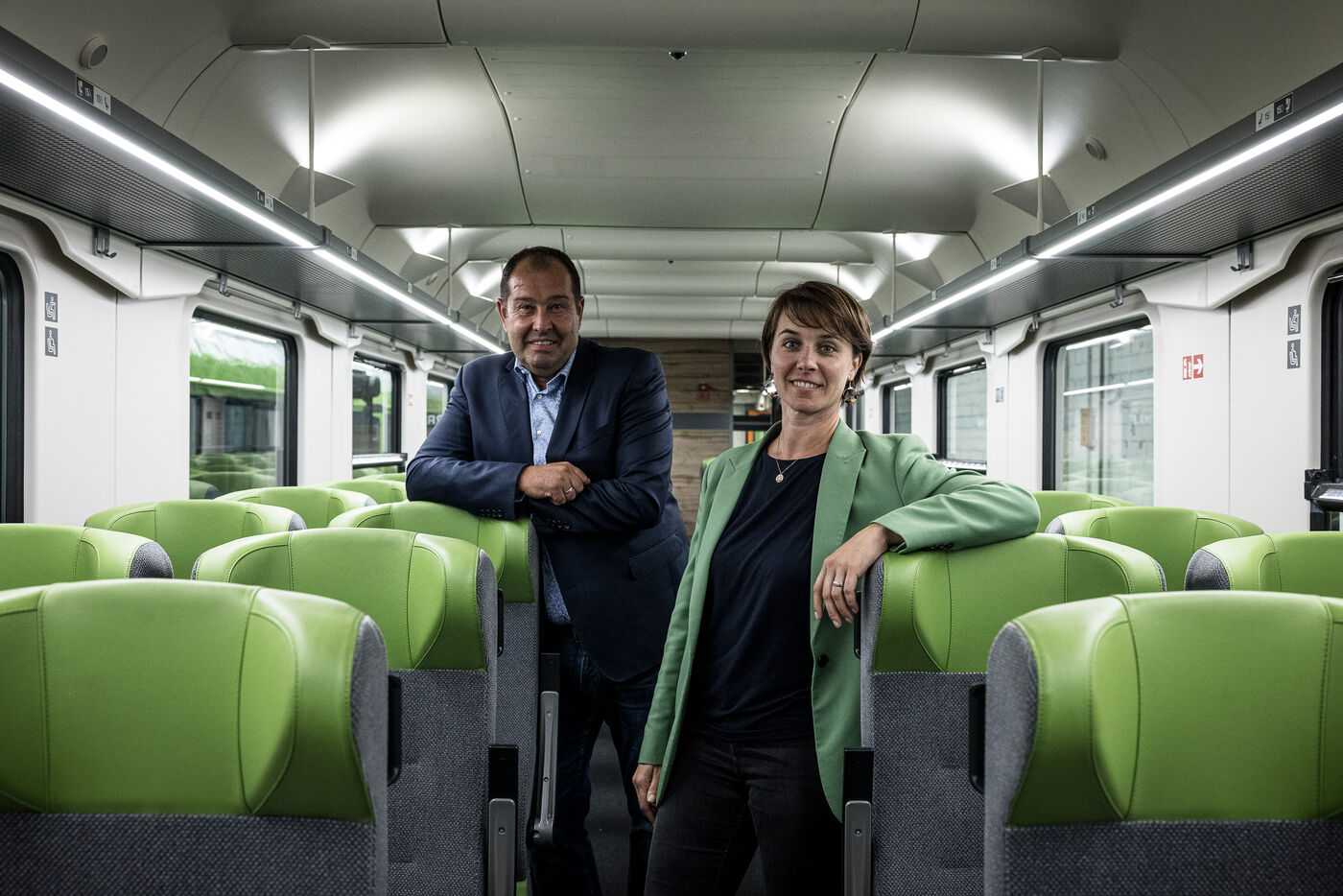 Aachen, Germany. 2023-09-01. Visit to Talbot, a company specializing in services for trains, streetcars, metros and other public transport vehicles. Located in the heart of the city, it offers a large surface area connected to the German railway system. Portrait of Talbot CEO Dirk Reuters and Belgian investor Catherine Noel.