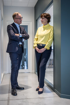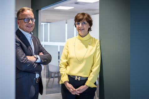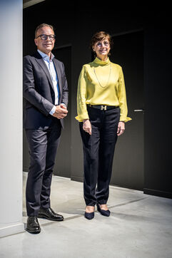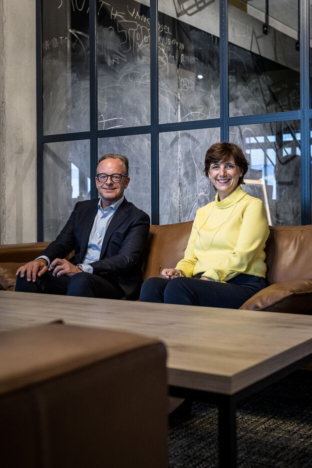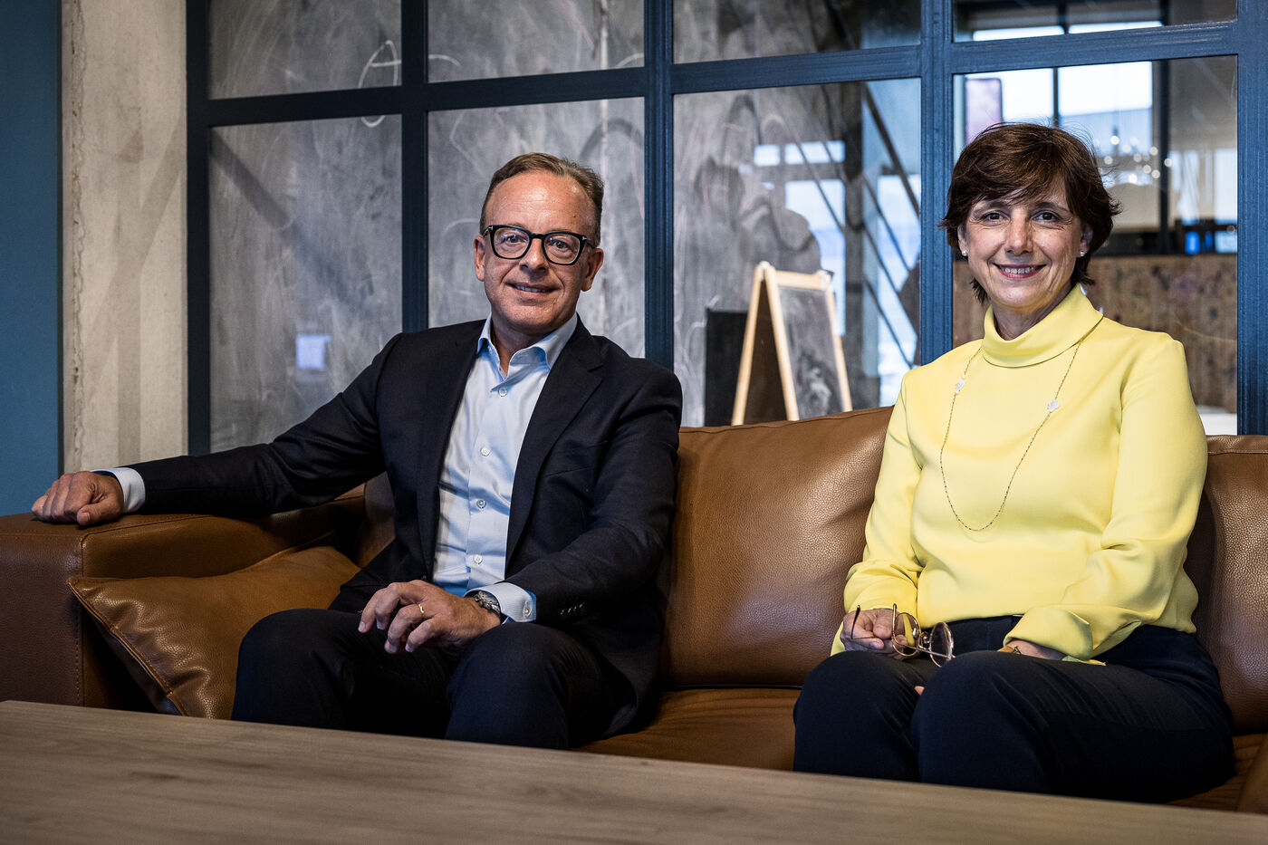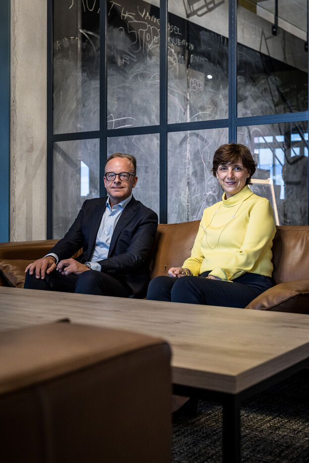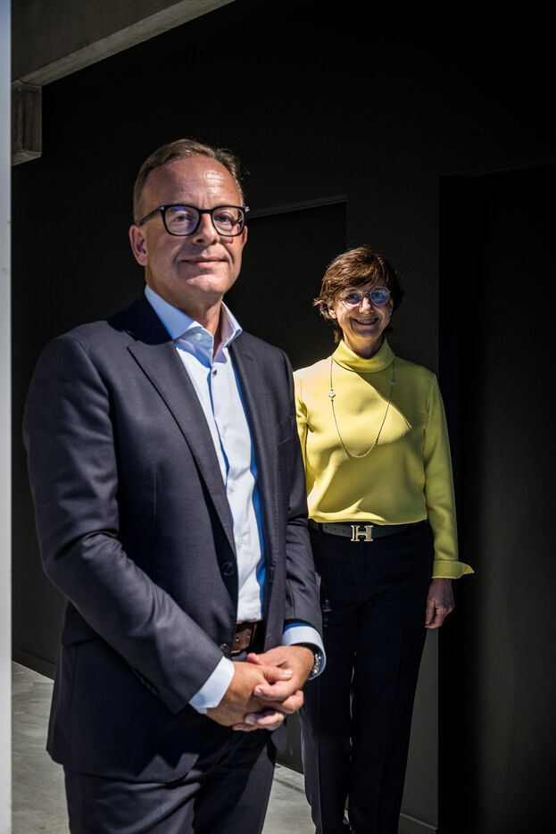 Namur, Belgium. 2023-09-21. Portrait of Xavier Hormaechea, President of BioWin and Sylvie Ponchaut, Managing Director.