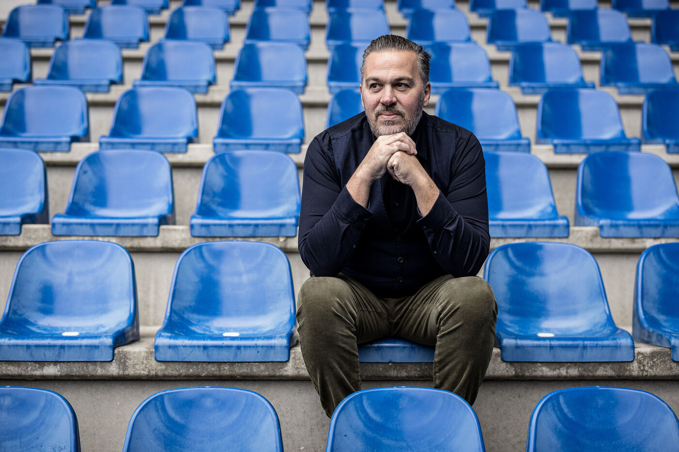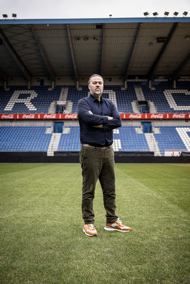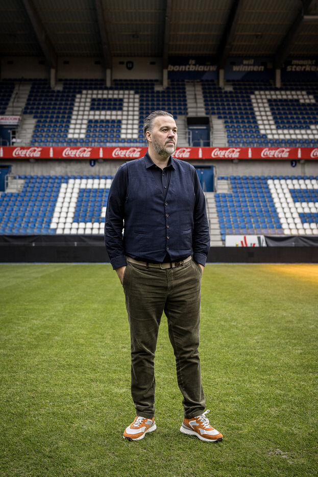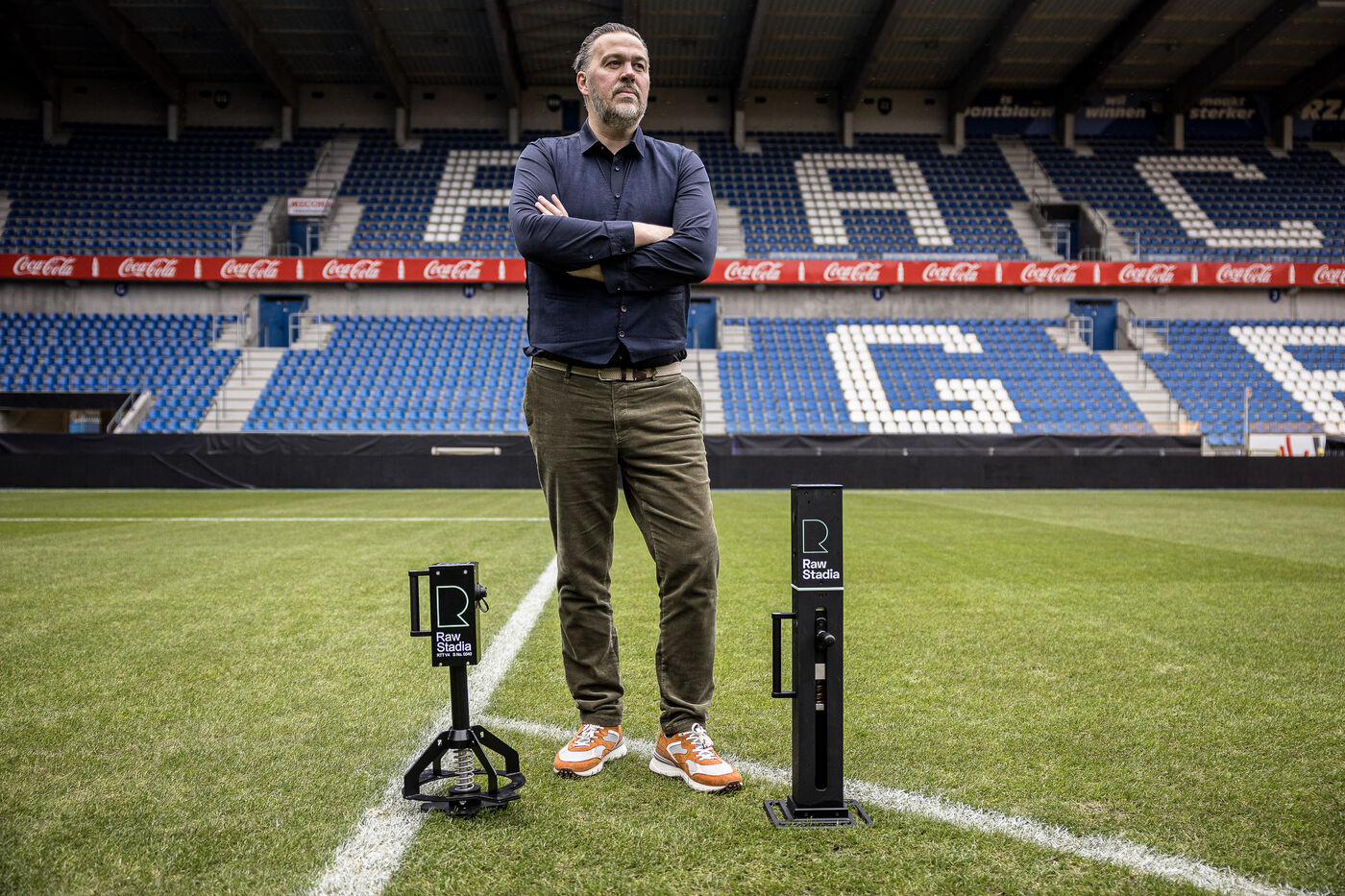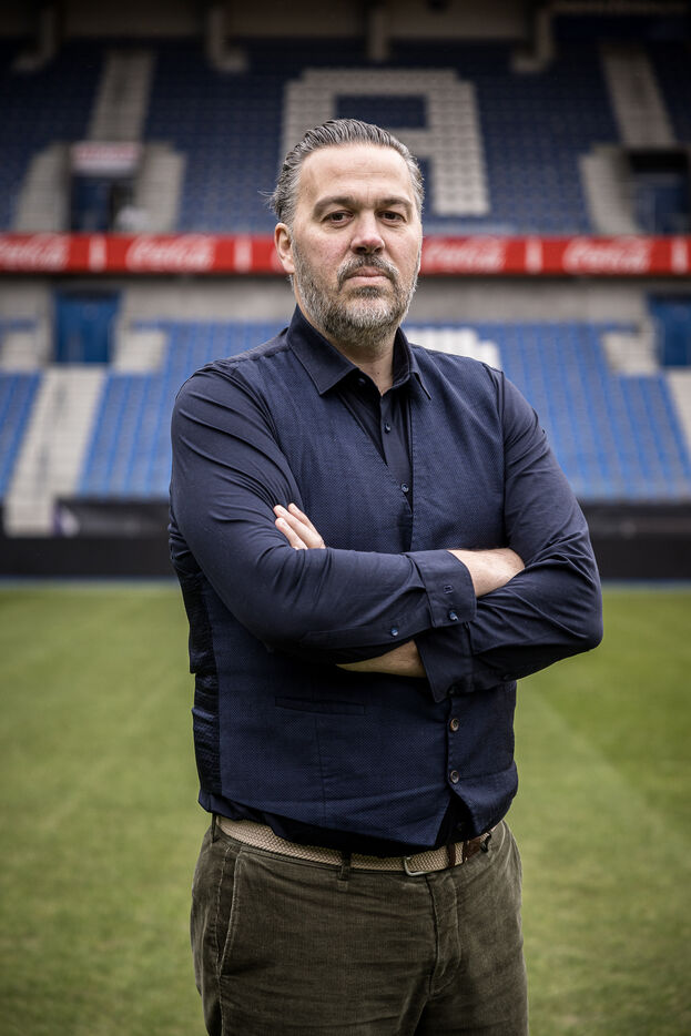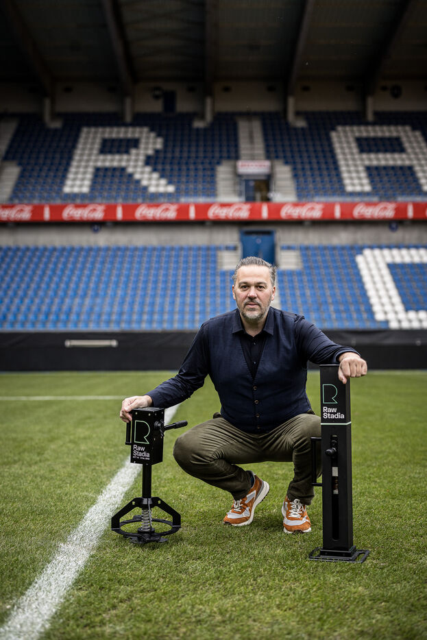 Genk, Belgique. 2023-12-11. Portrait de Jan Stryckers, CEO de Raw Stadia. L entreprise a developpe une technologie capable d analyser l etat de terrains de sport afin d ameliorer les performances des sportifs. Raw Stadia augmente son capital d 1,5 millions d euros. Photographie de Valentin Bianchi / Hans Lucas