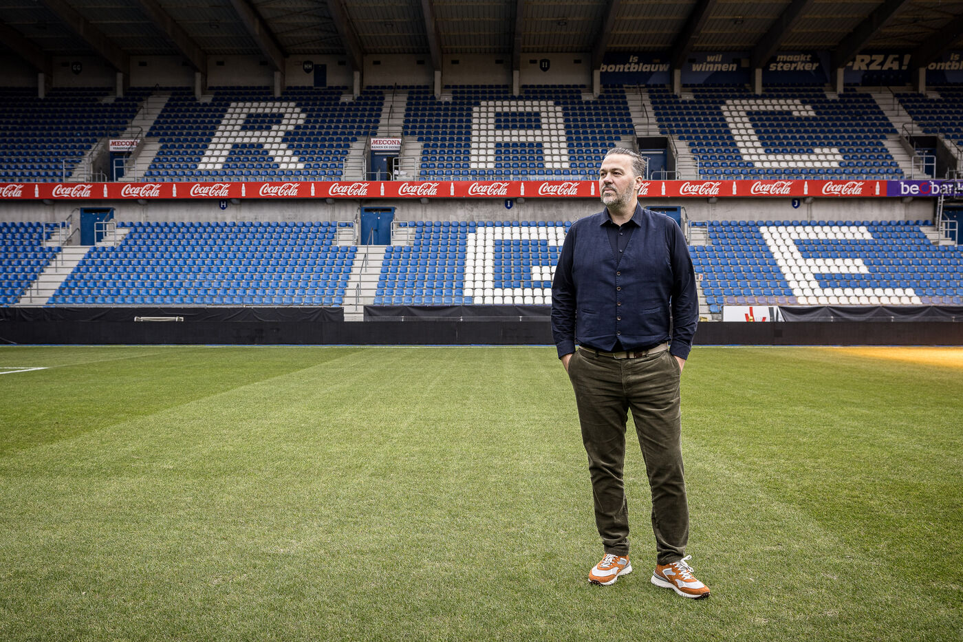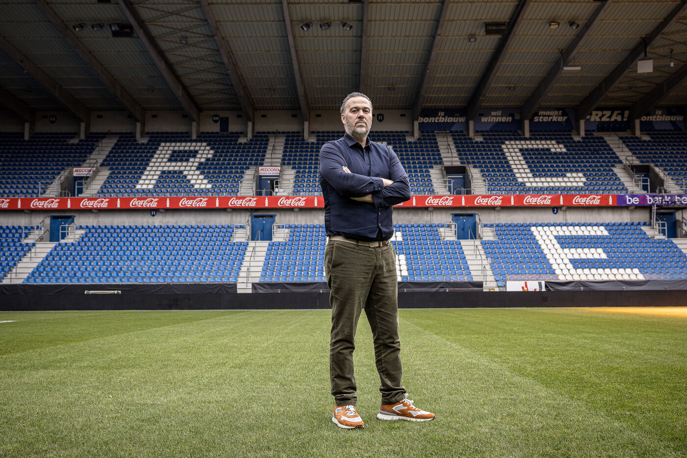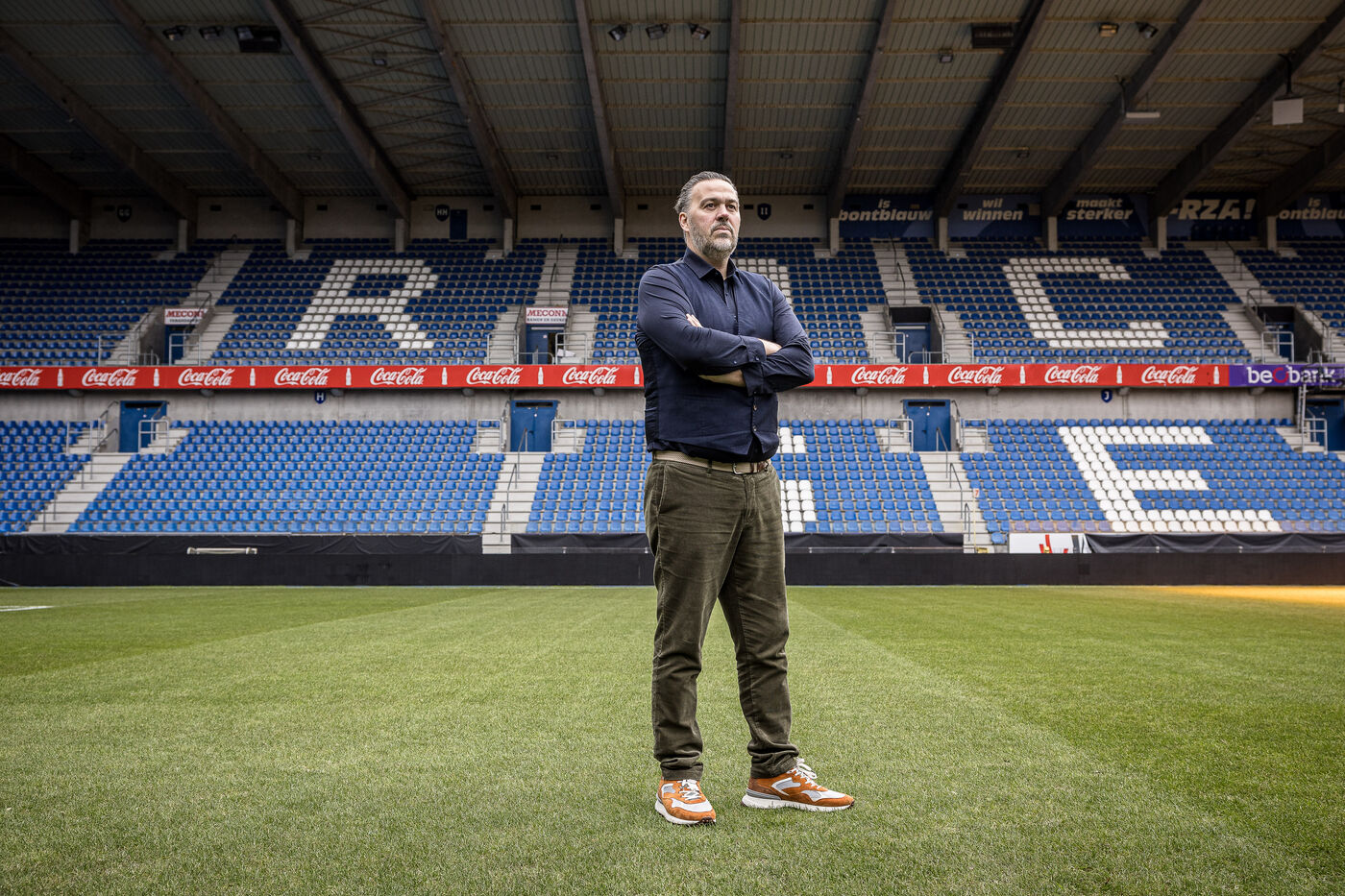 Genk, Belgique. 2023-12-11. Portrait de Jan Stryckers, CEO de Raw Stadia. L entreprise a developpe une technologie capable d analyser l etat de terrains de sport afin d ameliorer les performances des sportifs. Raw Stadia augmente son capital d 1,5 millions d euros. Photographie de Valentin Bianchi / Hans Lucas