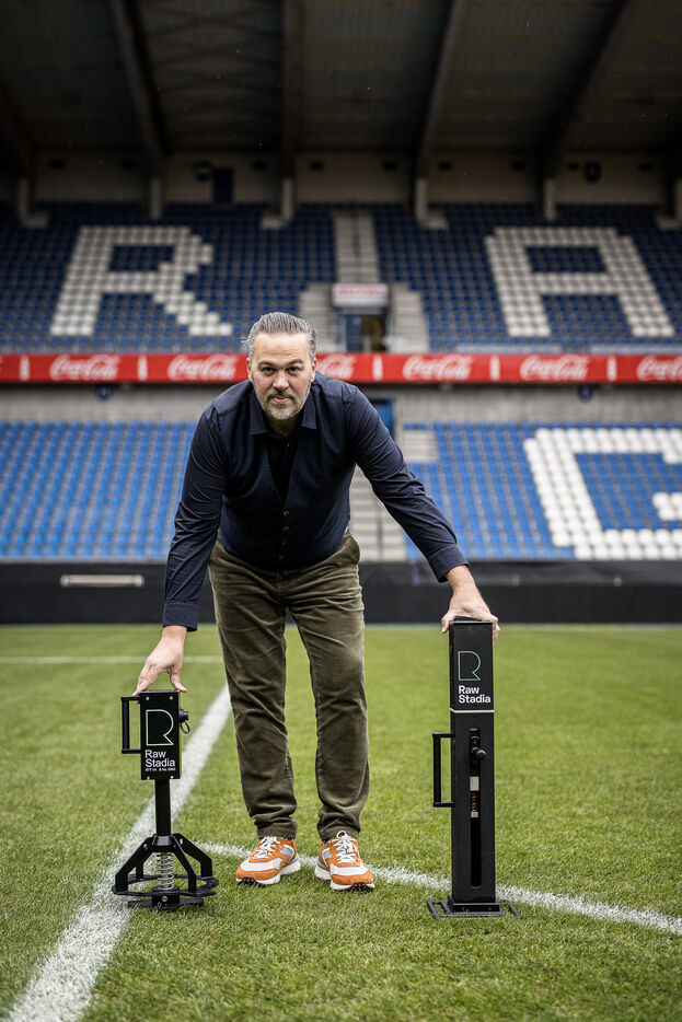 Genk, Belgium. 2023-12-11. Portrait of Jan Stryckers, CEO of Raw Stadia. The company has developed a technology capable of analyzing the condition of sports fields in order to improve athletes' performance. Raw Stadia increases its capital by 1.5 million euros. Photograph by Valentin Bianchi / Hans Lucas