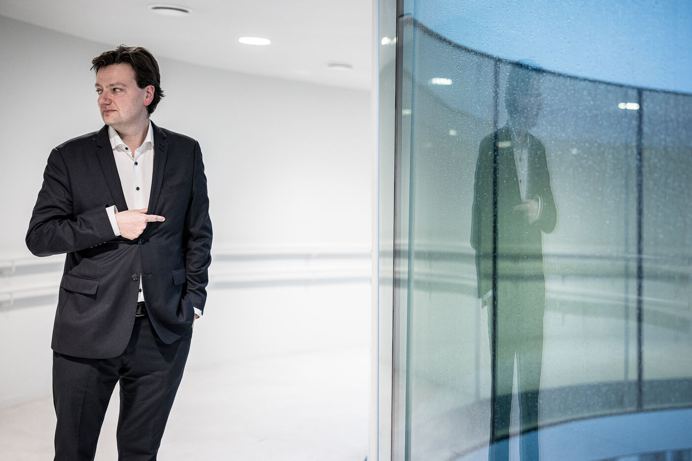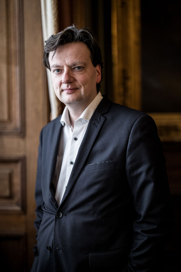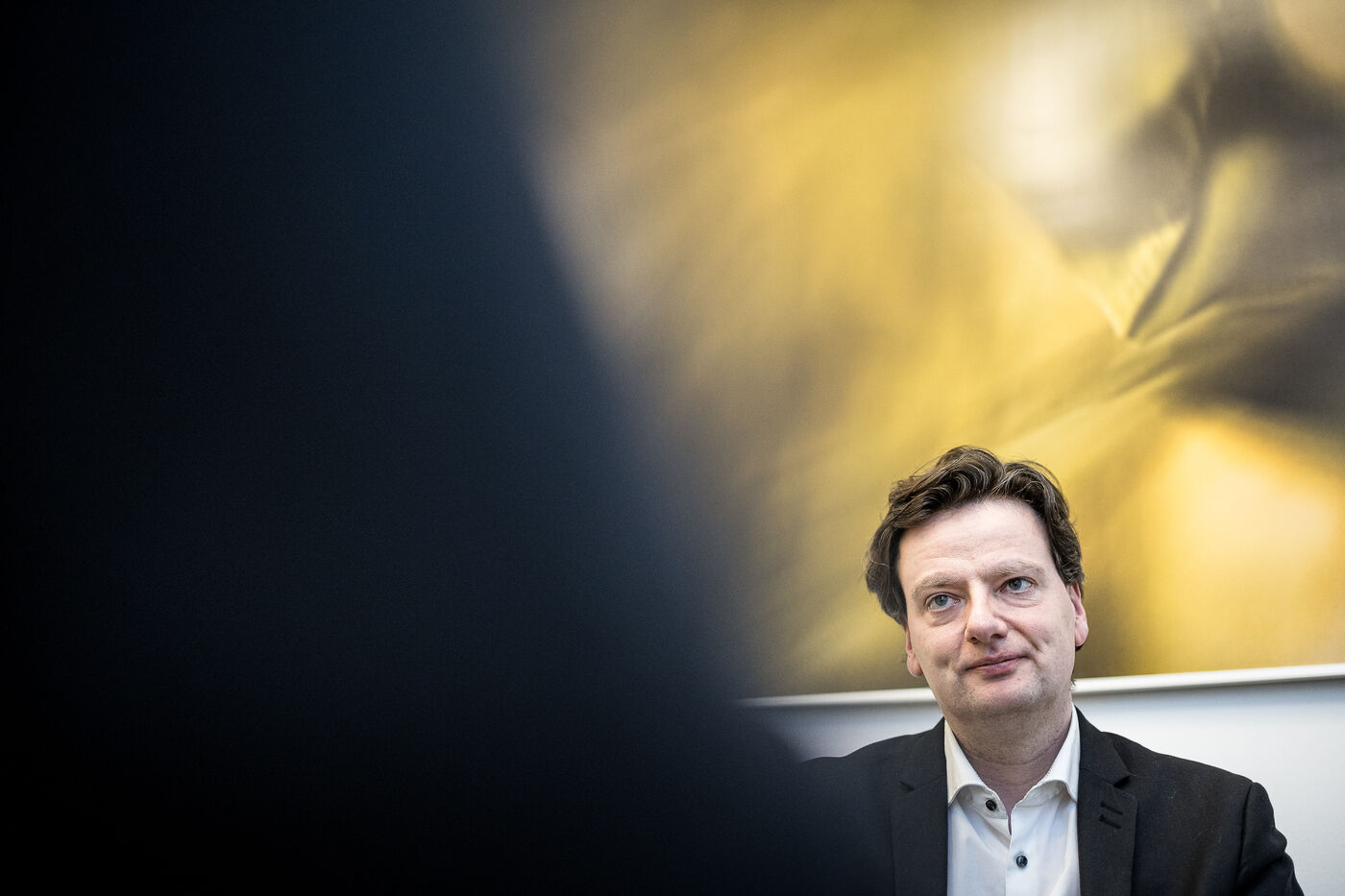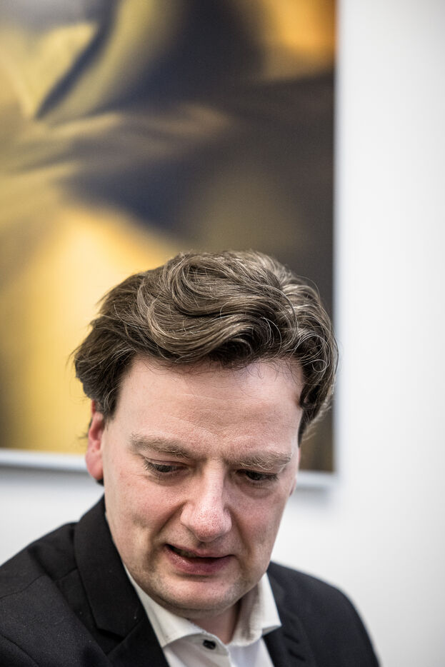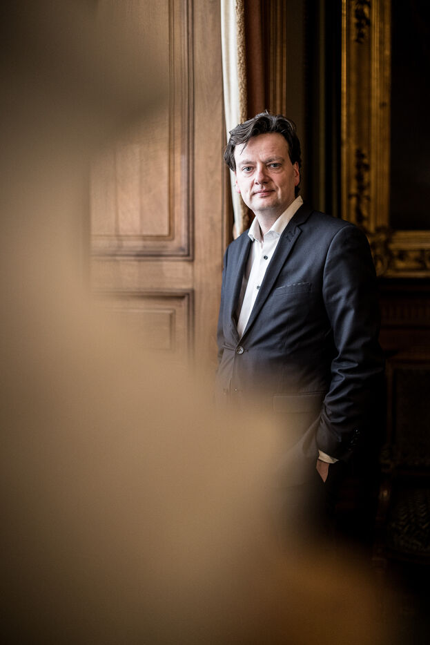 Brussels, Belgium. 2024-02-22. Portrait of Francois De Smet, President of DeFI and federal deputy in the House of Representatives. Photograph by Valentin Bianchi / Hans Lucas