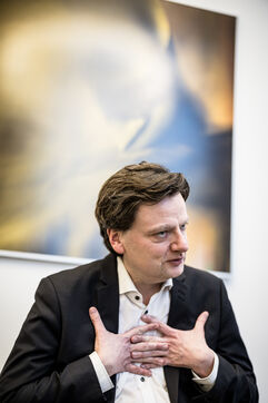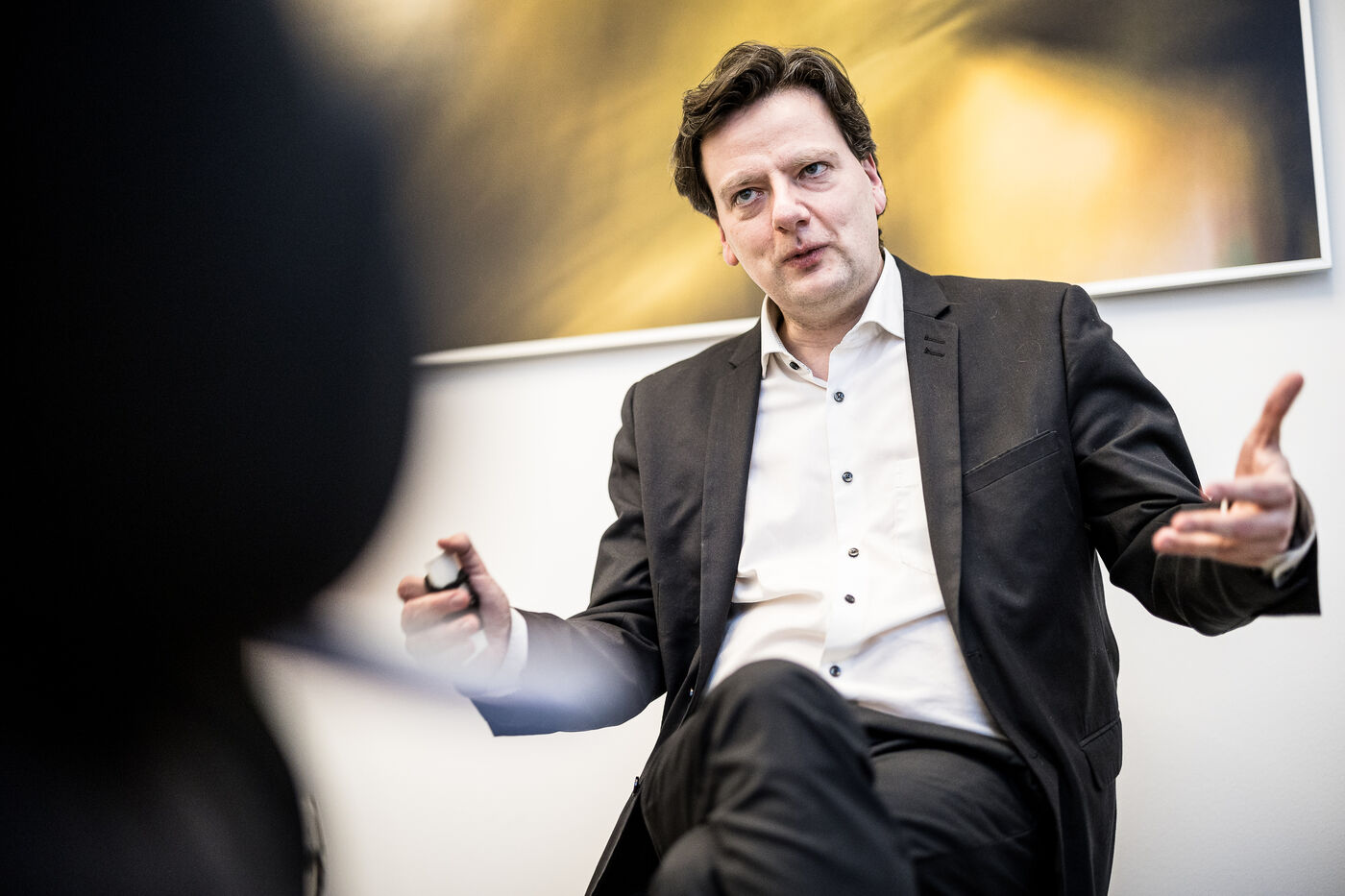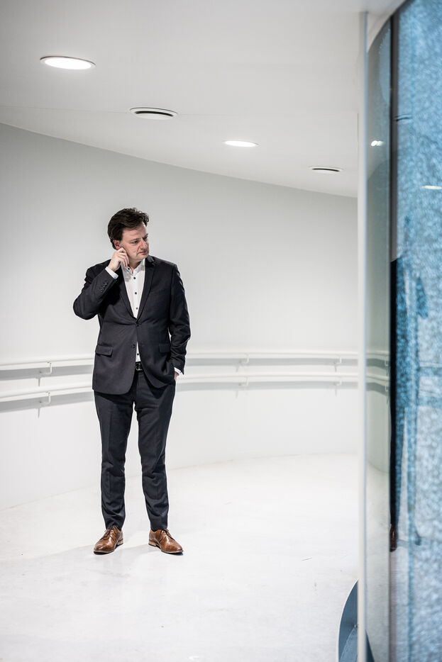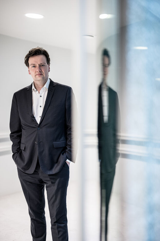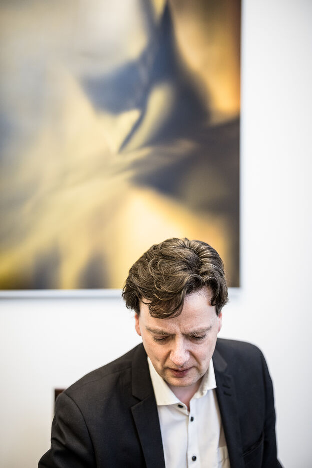 Brussels, Belgium. 2024-02-22. Portrait of Francois De Smet, President of DeFI and federal deputy in the House of Representatives. Photograph by Valentin Bianchi / Hans Lucas