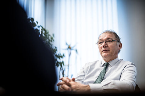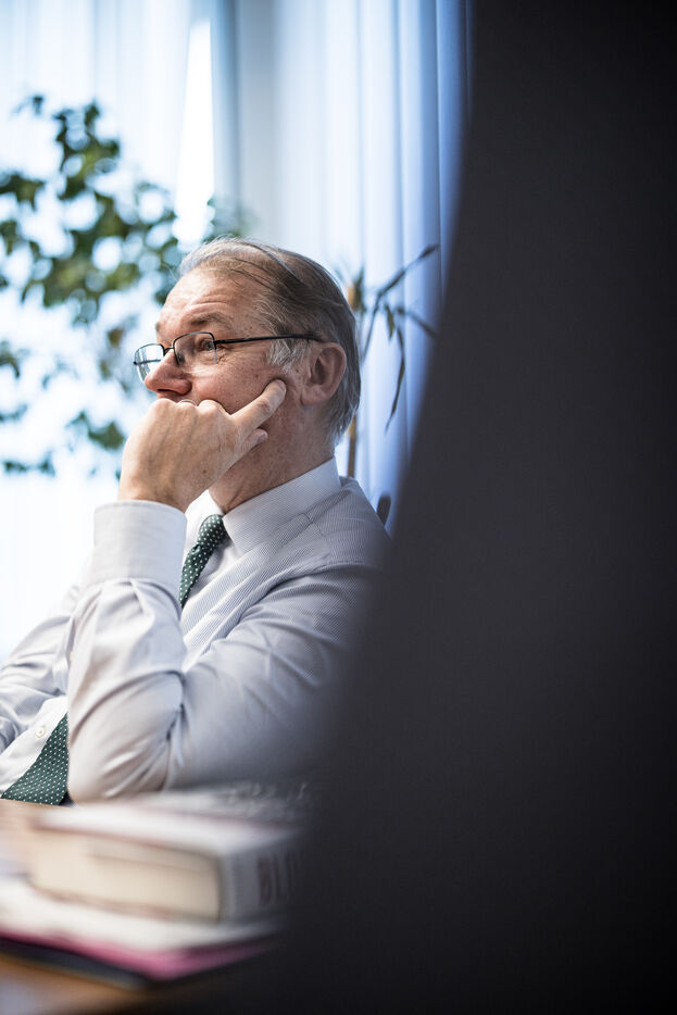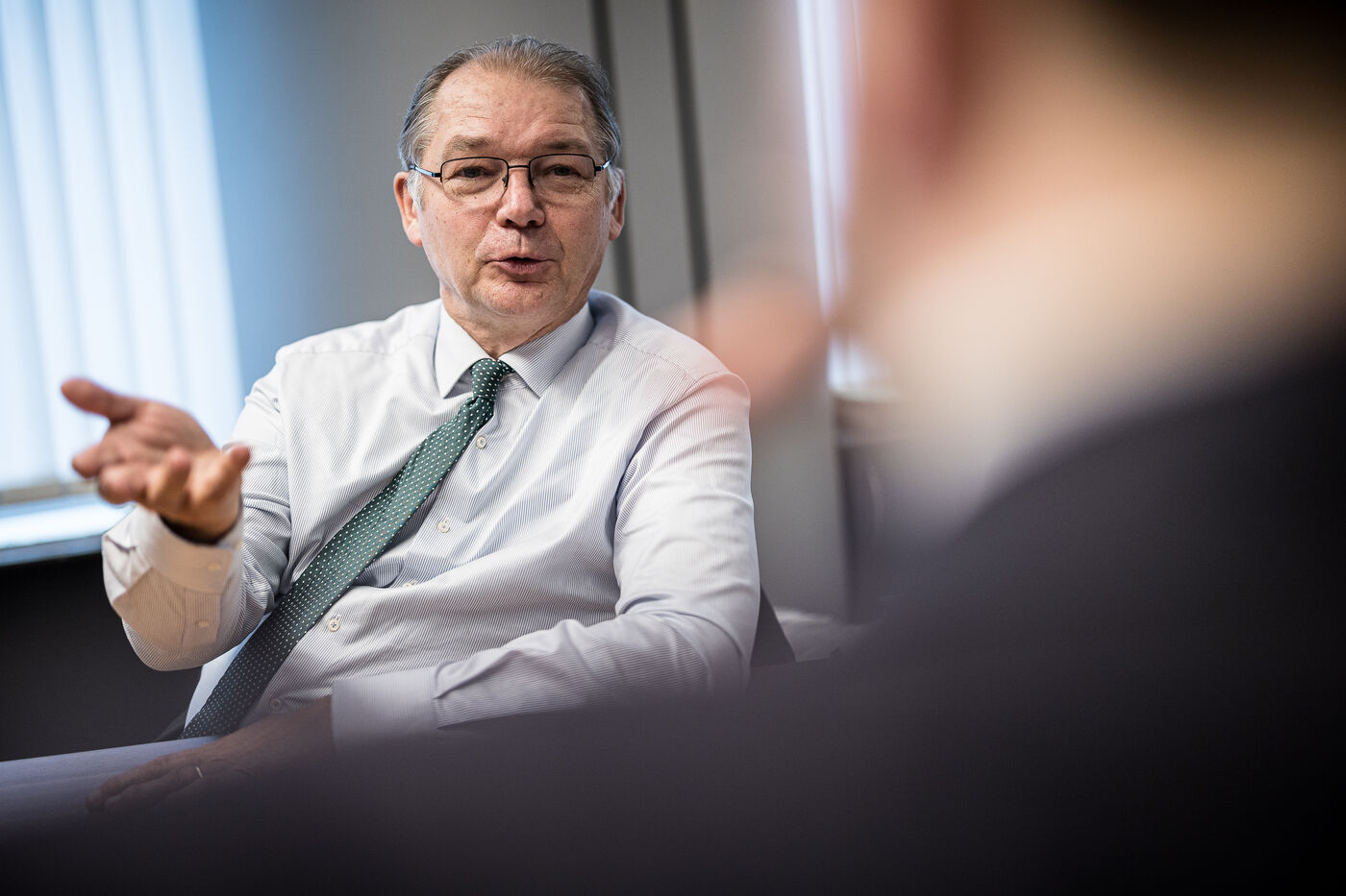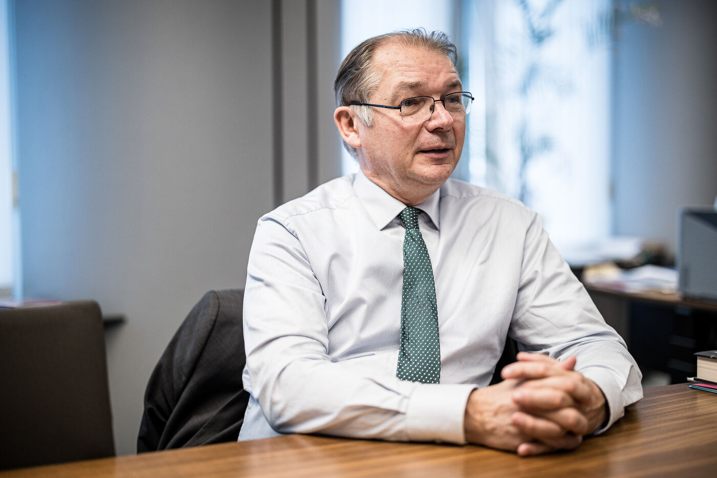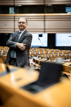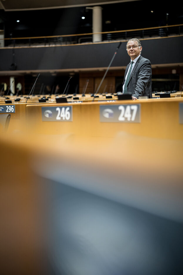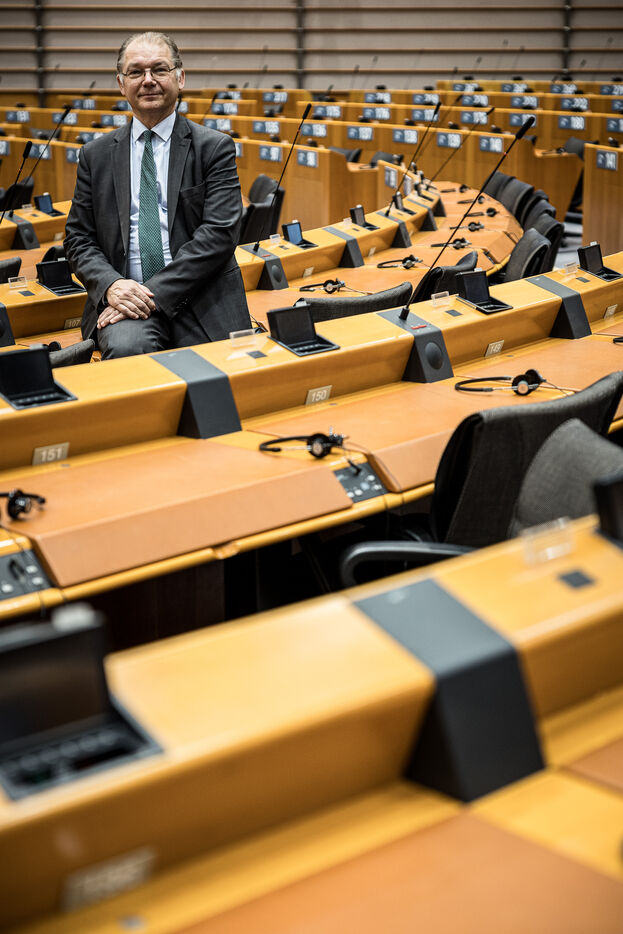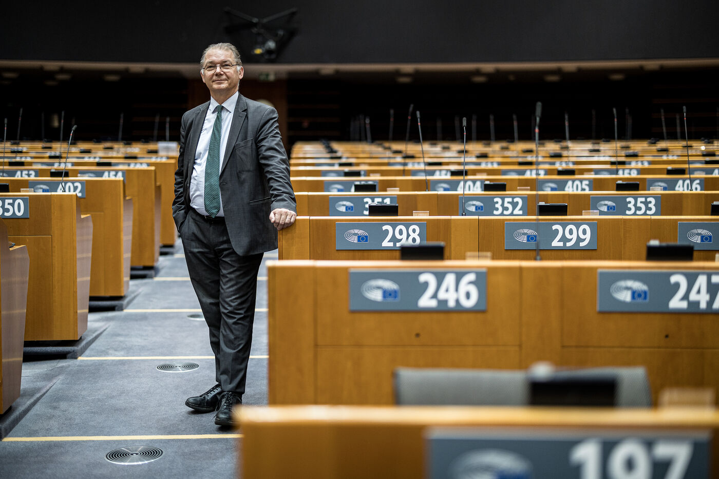 Brussels, Belgium. 2024-03-05. Portrait of Philippe Lamberts, European deputy and member of the Belgian Ecolo Party. Photograph by Valentin Bianchi / Hans Lucas
