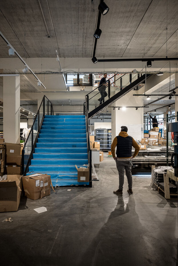 Waterloo, Belgique. 2024-03-21. Le premier magasin Monoprix de Belgique ouvrira le 28 Mars prochain, les travaux avancent rapidement pour que tout soit pret pour l ouverture prochaine. Photographie de Valentin Bianchi / Hans Lucas