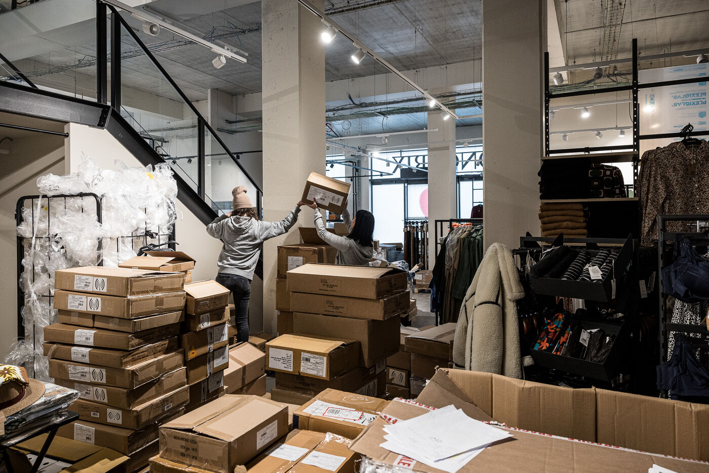 Waterloo, Belgium. 2024-03-21. Belgium's first Monoprix store will open on March 28, with work progressing rapidly to ensure that everything is ready for the opening. Photograph by Valentin Bianchi / Hans Lucas