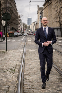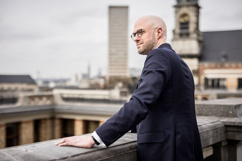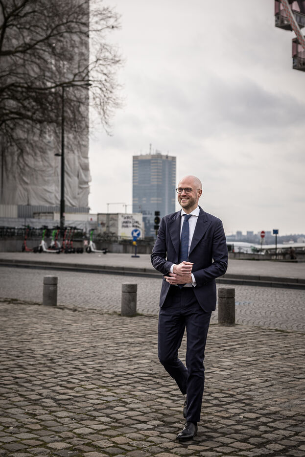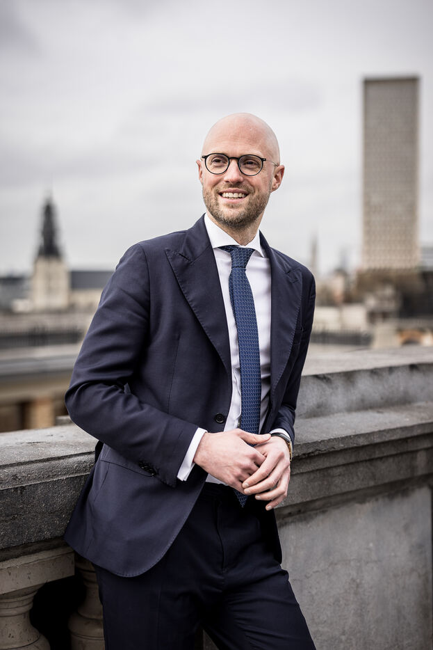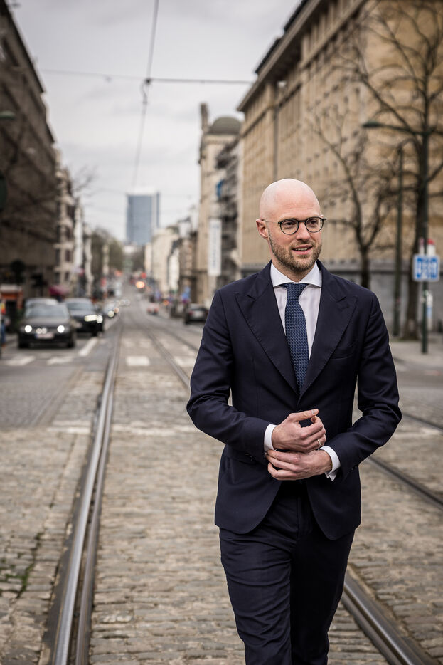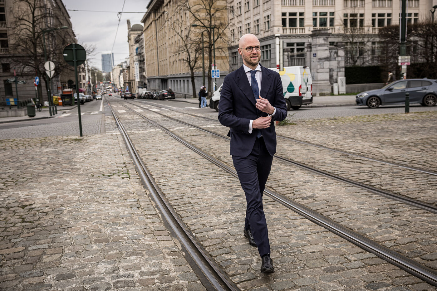 Brussels, Belgium. 2024-03-21. Portrait of David Leisterh, Belgian politician, president of the Brussels branch of the Mouvement Réformateur, MR. Member of the Brussels Regional Parliament and President of the Watermael-Boitsfort CPAS Photograph by Valentin Bianchi / Hans Lucas