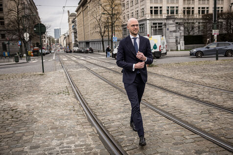 Bruxelles, Belgique. 2024-03-21. Portrait de David Leisterh, homme politique belge, president de l antenne bruxelloise du Mouvement Réformateur, MR. Depute au Parlement regional bruxellois et President du CPAS de Watermael-Boitsfort Photographie de Valentin Bianchi / Hans Lucas