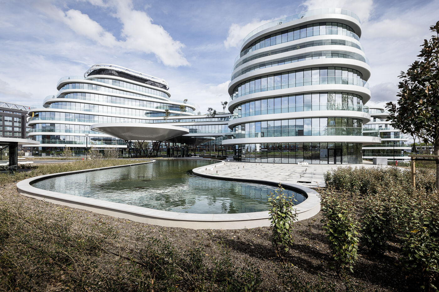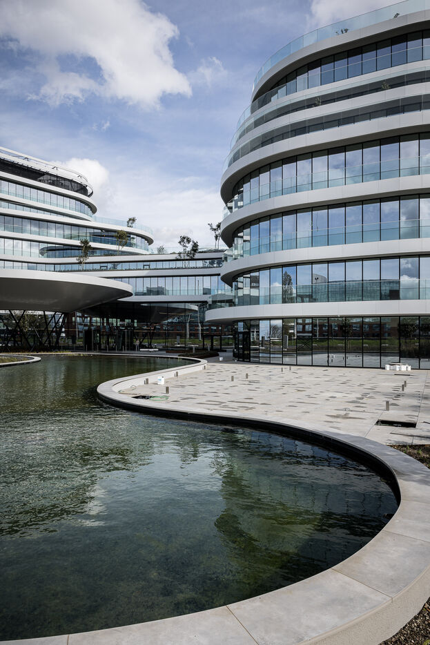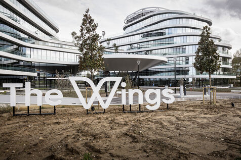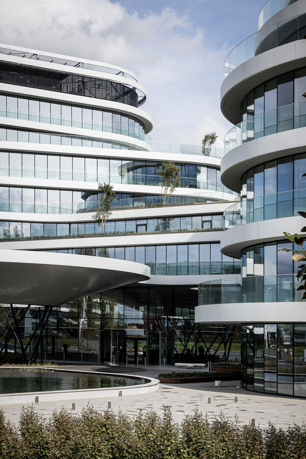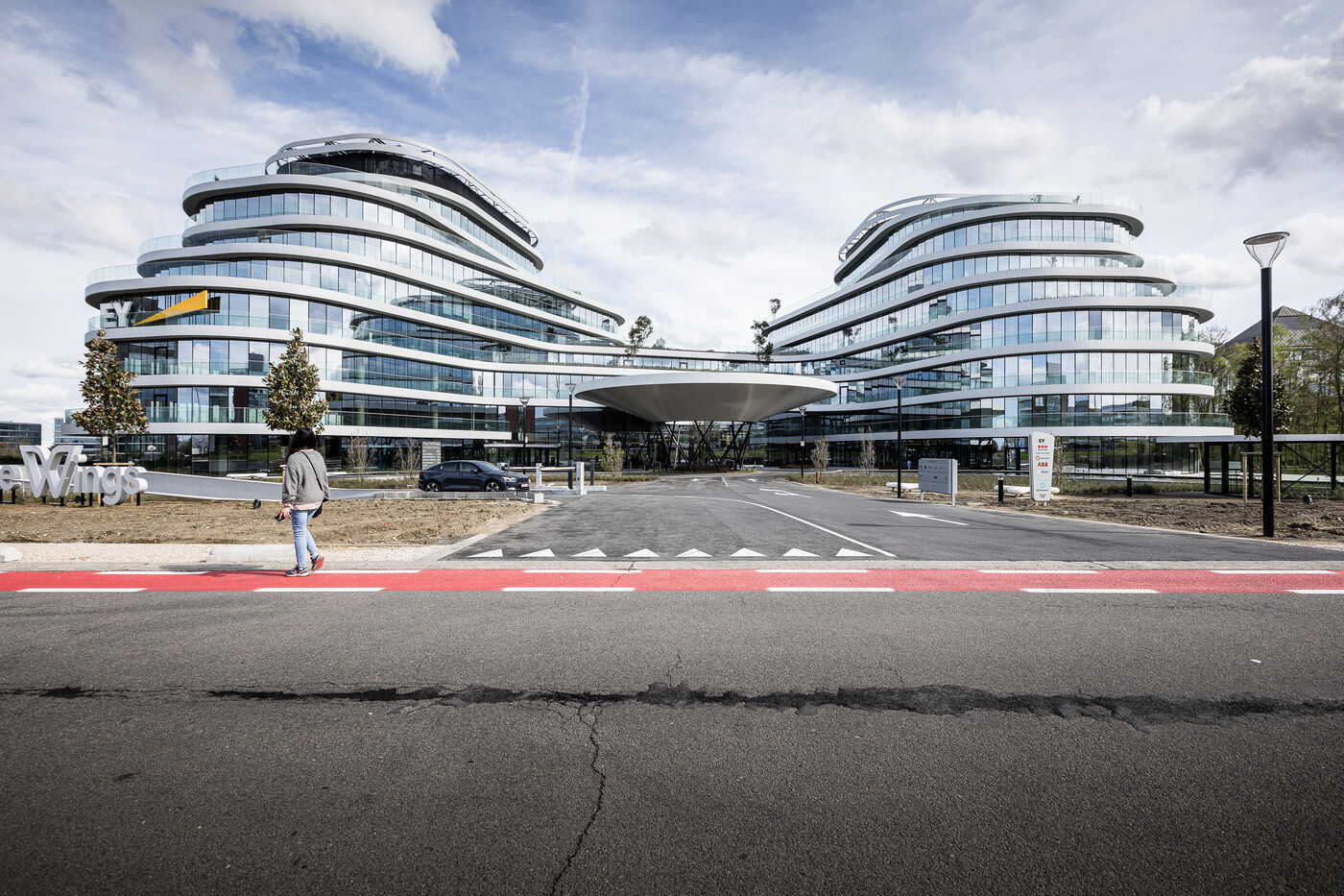 Diegem, Belgium. 2024-04-05. Office building and hotel, The Wings, by Ghelamco. Photograph by Valentin Bianchi / Hans Lucas