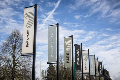 Diegem, Belgique. 2024-04-05. Batiment de bureaux, Park 7, realise par l entreprise Ghelamco. Photographie de Valentin Bianchi / Hans Lucas