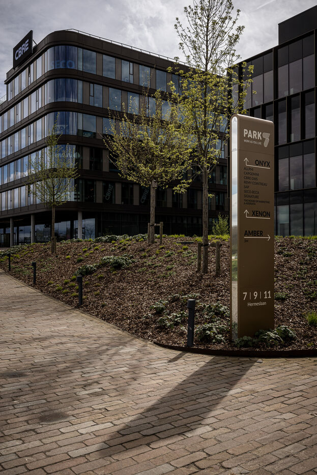 Diegem, Belgium. 2024-04-05. Office building, Park 7, built by Ghelamco. Photograph by Valentin Bianchi / Hans Lucas