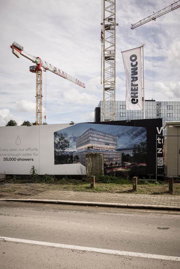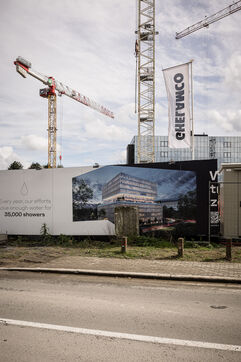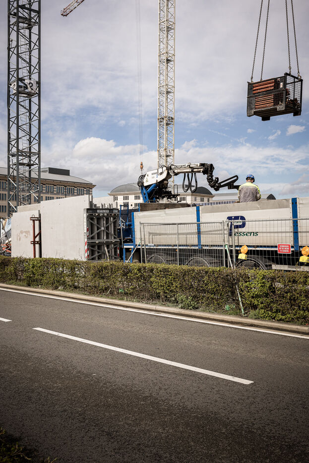 Machelen, Belgium. 2024-04-05. Building under construction, The Cube, by Ghelamco. Photograph by Valentin Bianchi / Hans Lucas