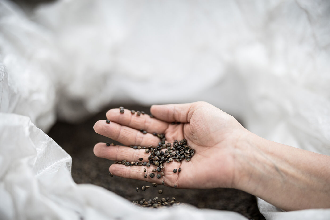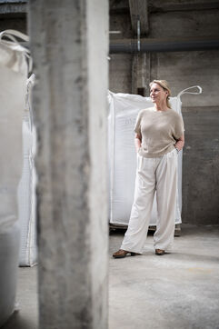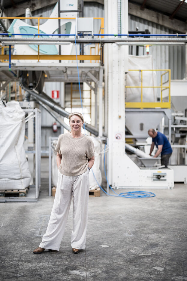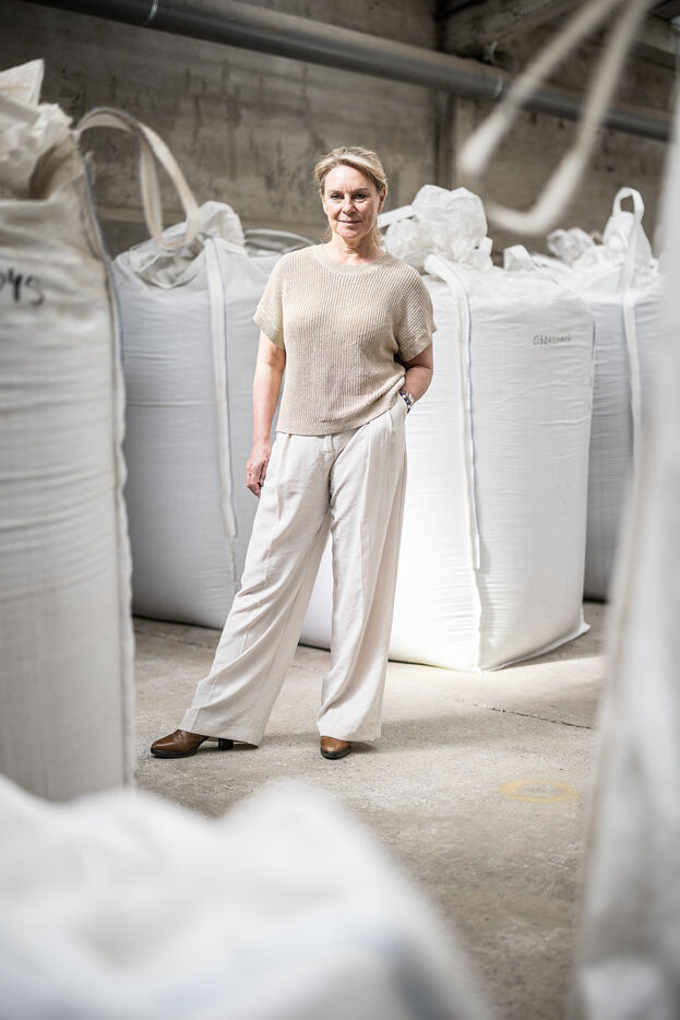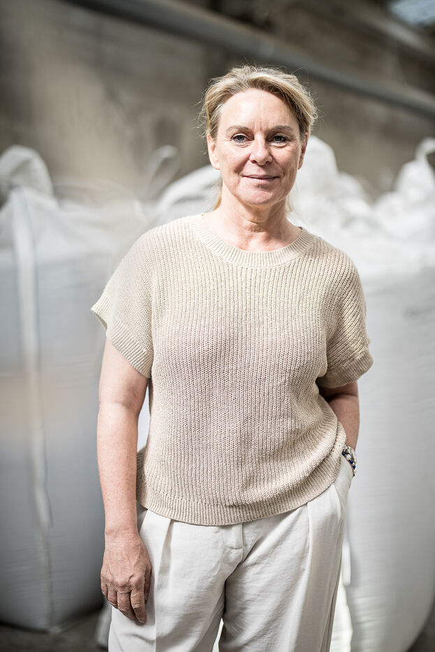 Portrait of Isabelle Coupienne, CEO and founder of Land Farm & Men and the Graines de Curieux brand in Marchovelette, Belgium, 11 July 2024.