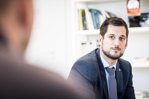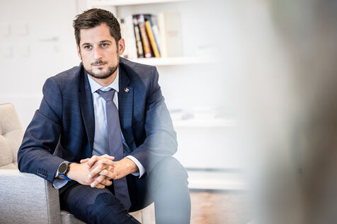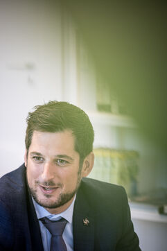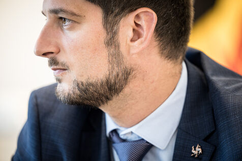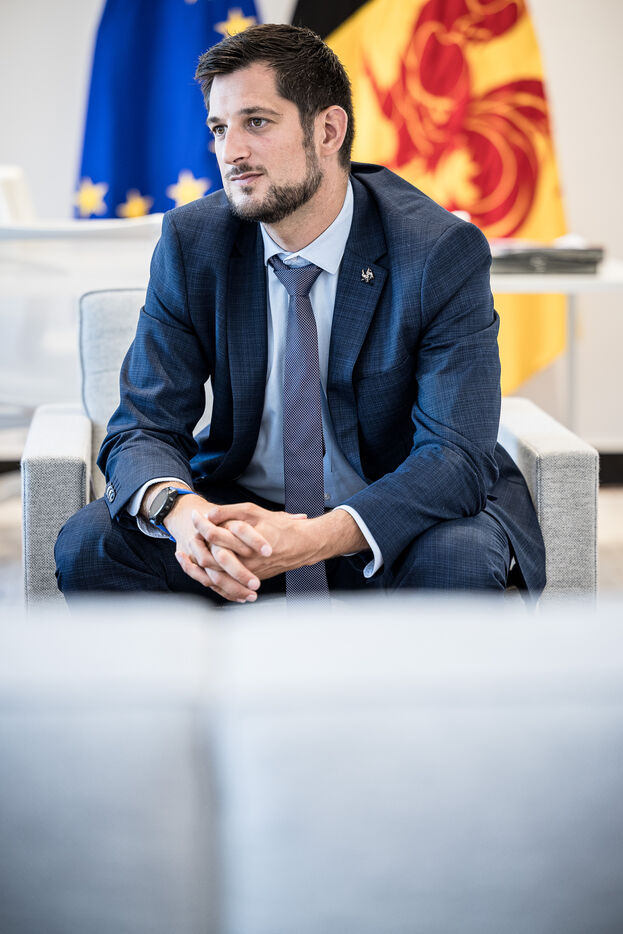 Portrait of Adrien Dolimont, MR, Minister President of the Walloon Government in Namur, Belgium, 29 August 2024.