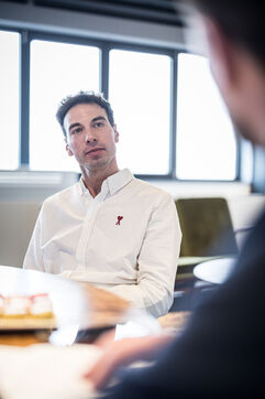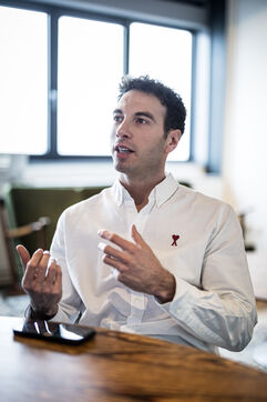 Portrait de Michael Labro, Fondateur et CEO de PM Sweet, entreprise specialisee dans la production de macarons a Dison, Belgique, 15 Janvier 2025.