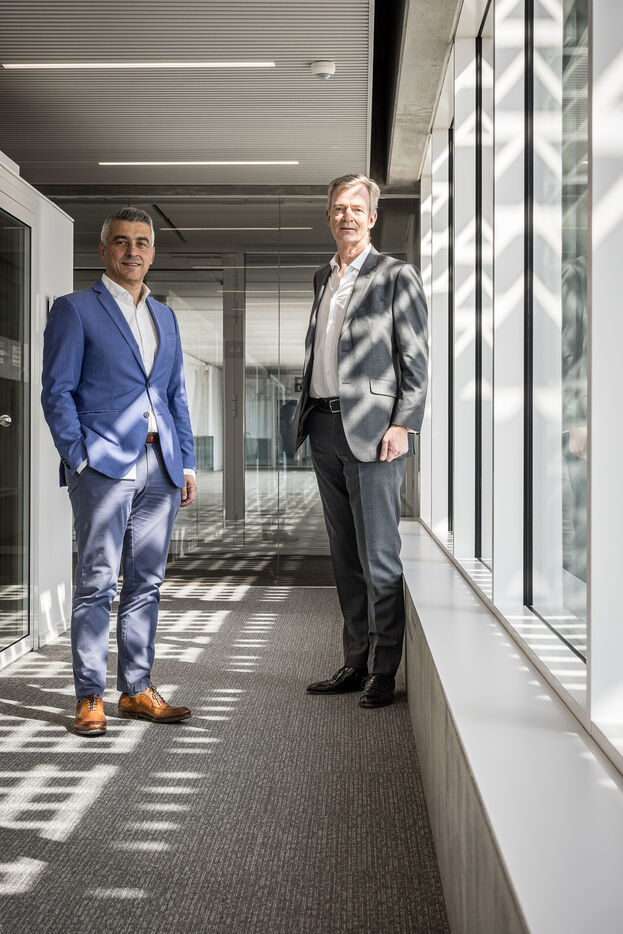 Portrait of Houtai Choumane and Francois Blondel, CEO of Kiomed Pharma in Liege, Belgium, March 27th 2025.