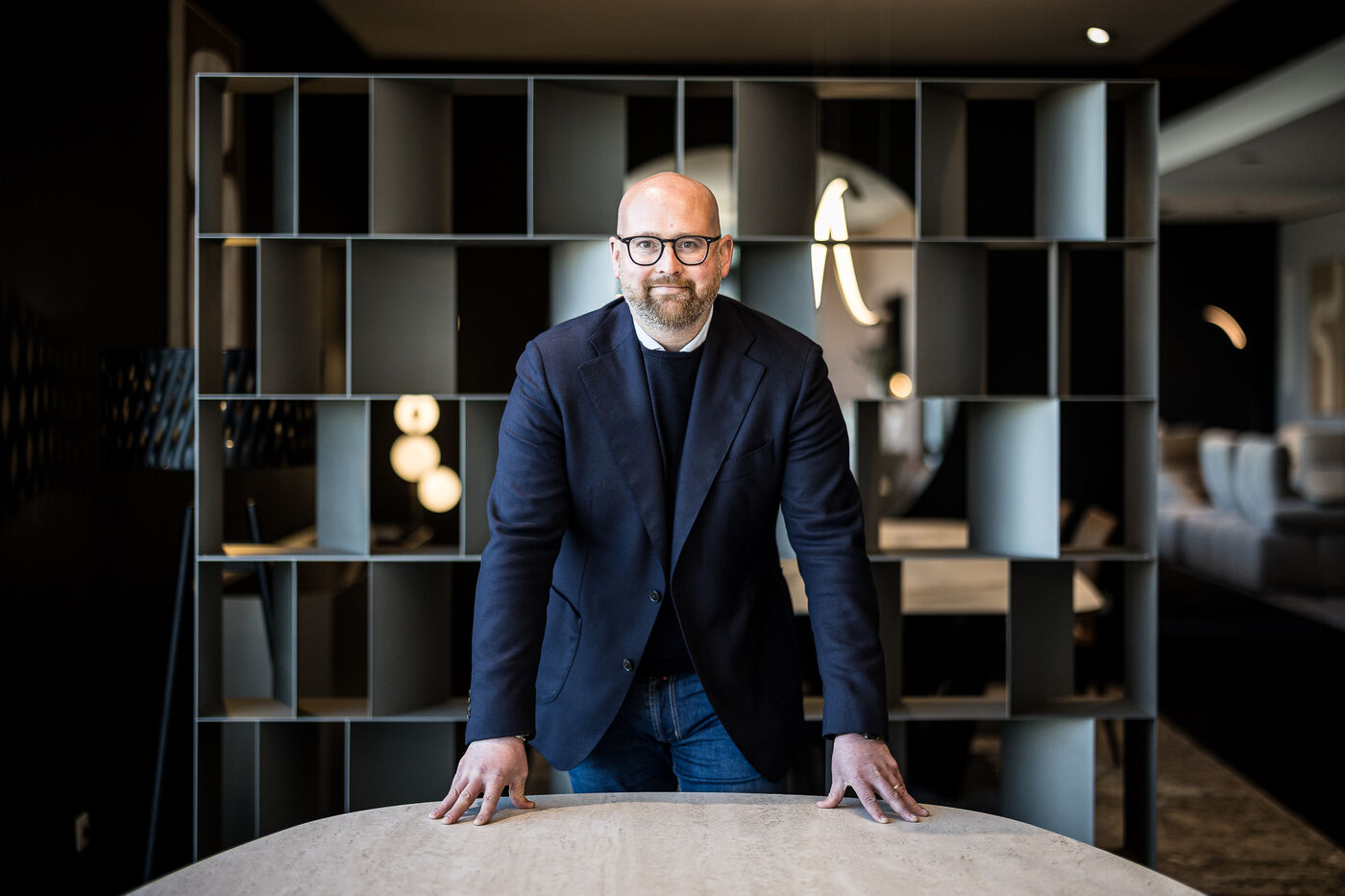 Portrait of Sebastien Mailleux, Administrator of Meubles Mailleux in Neupre, Belgium, April 2, 2025.