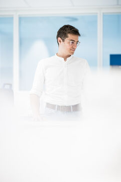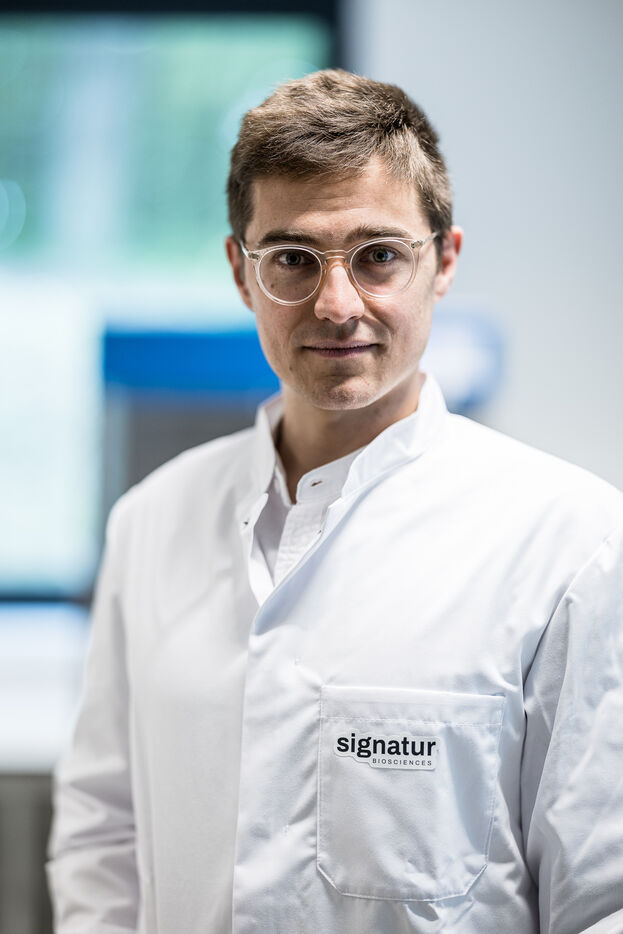 Portrait of Celestin De Wergifosse in the laboratories of Signatur BioSciences, the company of which he is CEO, in Liege, Belgium, May 21, 2025.