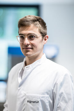 Portrait de Celestin De Wergifosse dans les laboratoires de l entreprise Signatur BioSciences dont il est le CEO, a Liege, Belgium, 21 Mai, 2025.