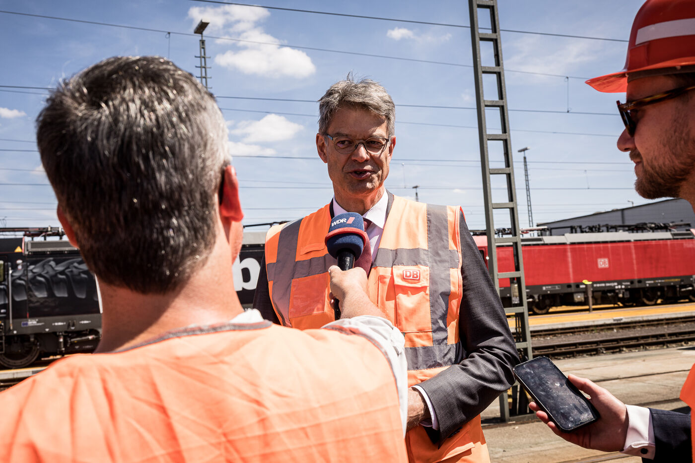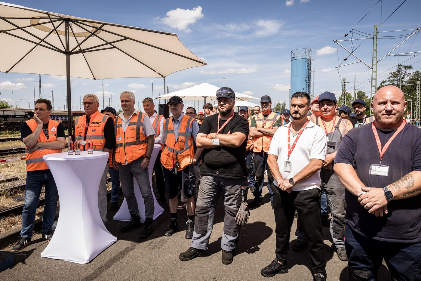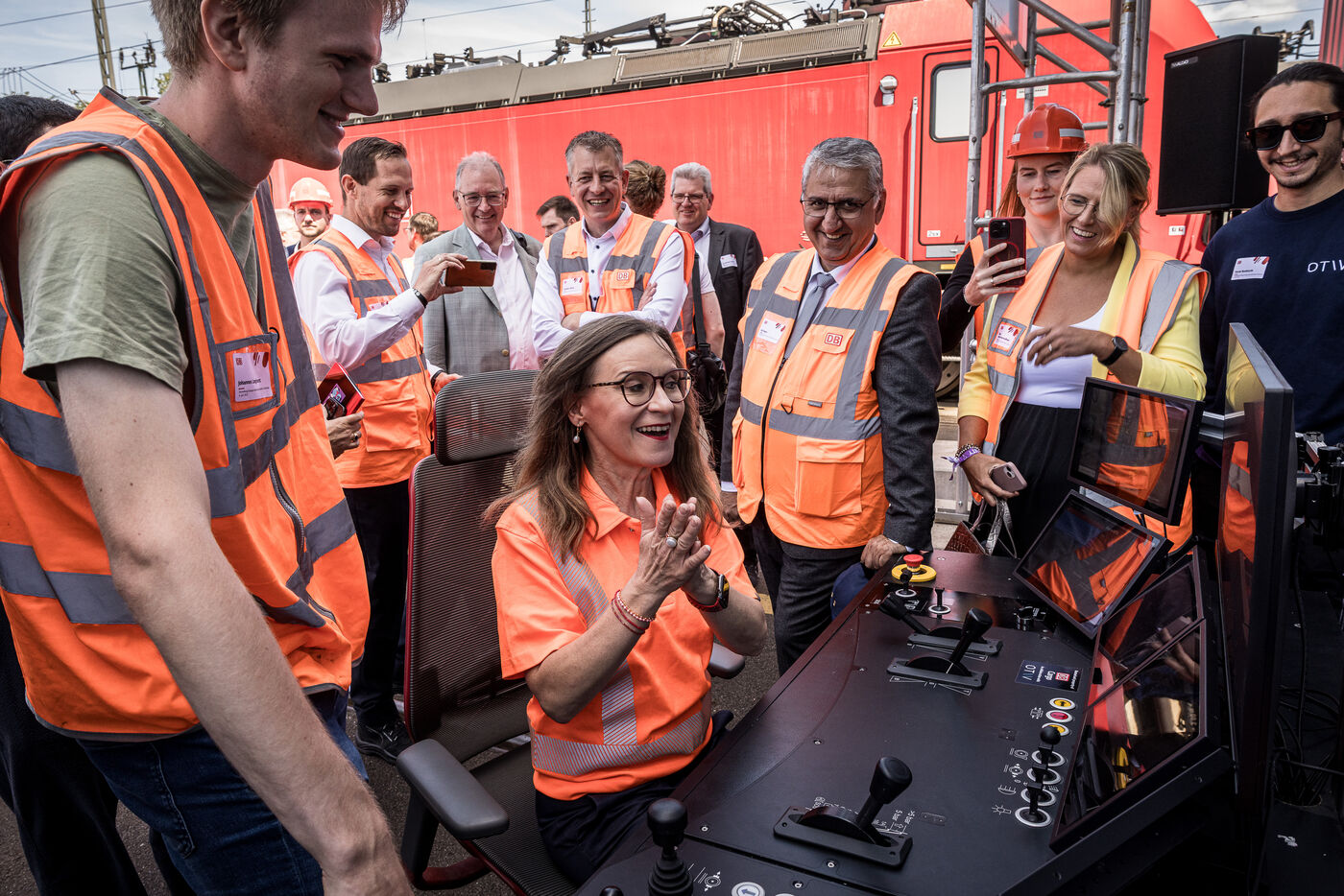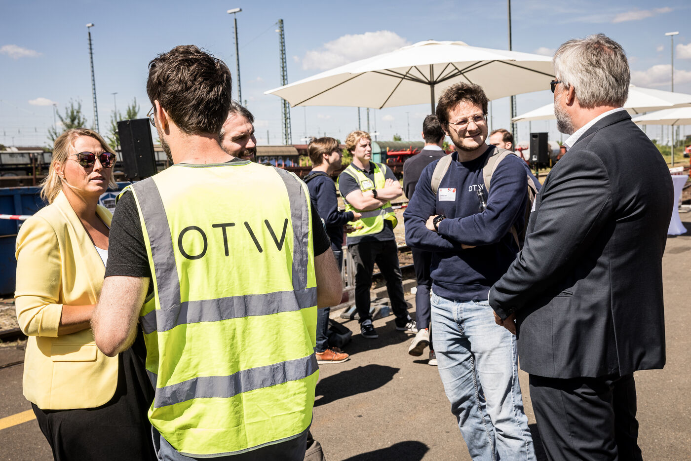Otiv has developed the technology needed to launch the first automated freight train line with Deutsche Bahn. Inauguration in the presence of the team and the German Minister of Transport, Patrck Schnieder, in Koln, Germany, July 4, 2025.
