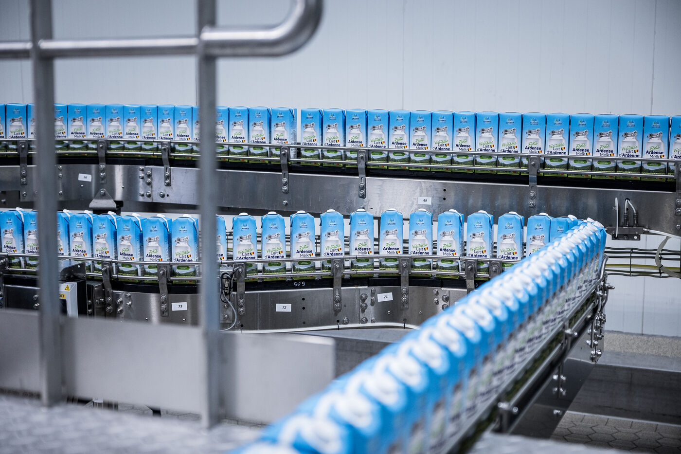 L entreprise Solarec, specialisee dans la production de lait et de beurre, utilise uniquement du lait provenant de Wallonie a Recogne, Belgique, 9 Juillet 2025.