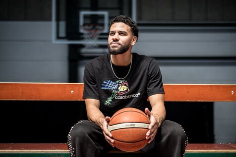 Portrait of Ajay Mitchell, Belgian basketball player for the NBA team Oklahoma City Thunder, in Ans, Belgium, July 30, 2025.