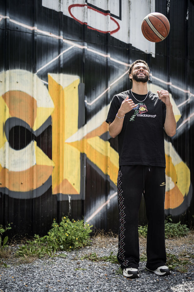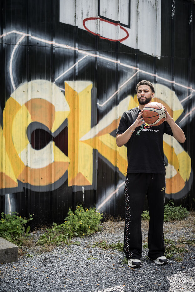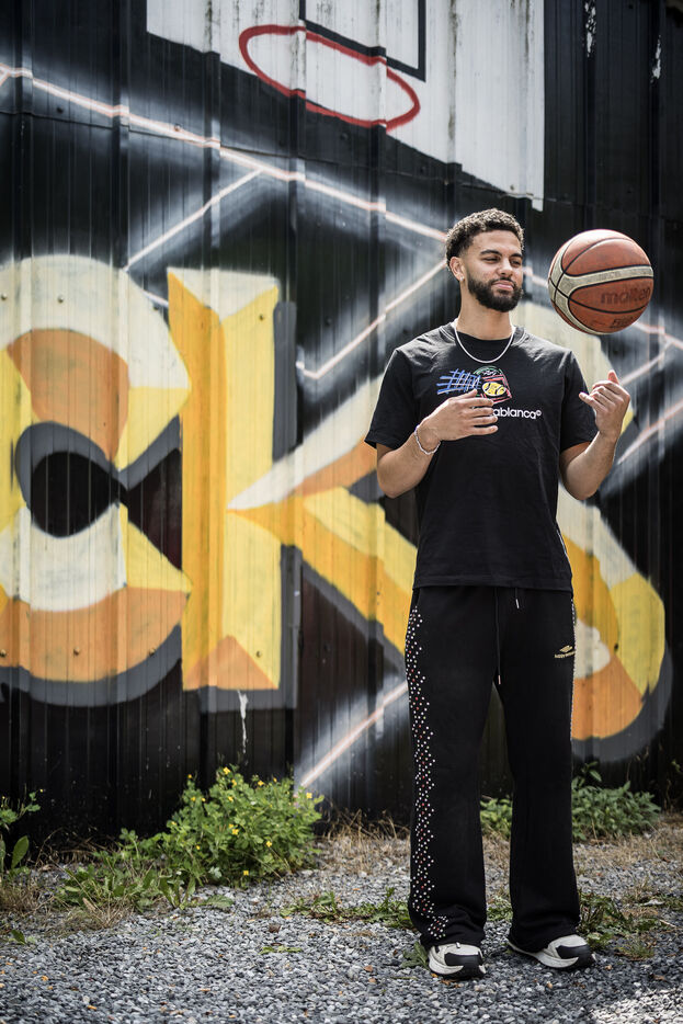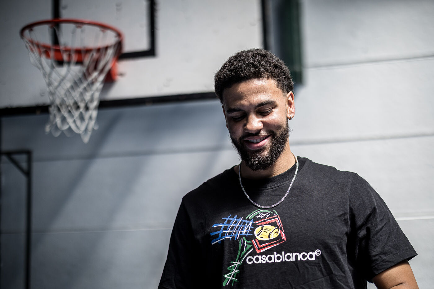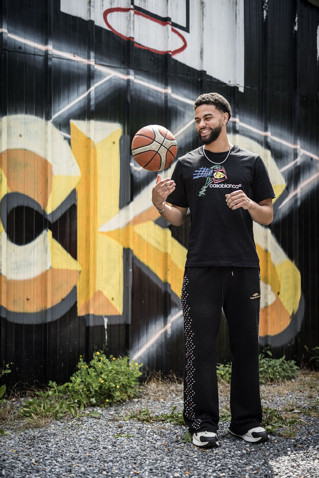Portrait d Ajay Mitchell, basketteur belge de l equipe NBA des Oklahoma City Thunder, a Ans, Belgique, 30 Juillet 2025.