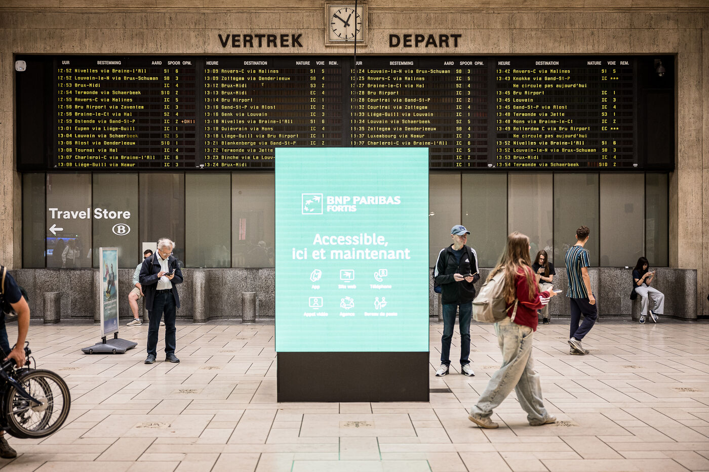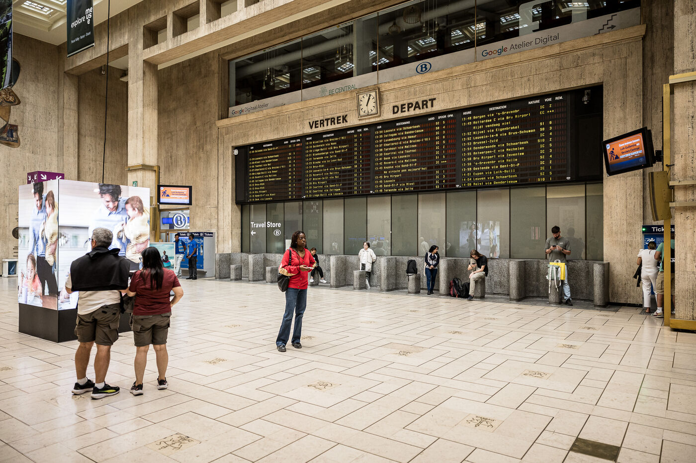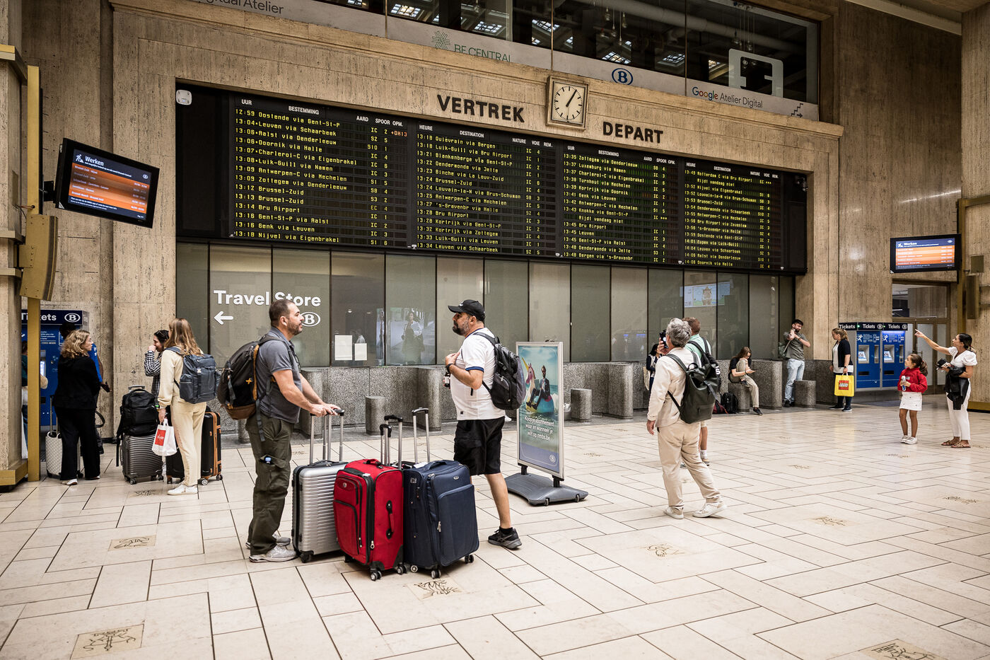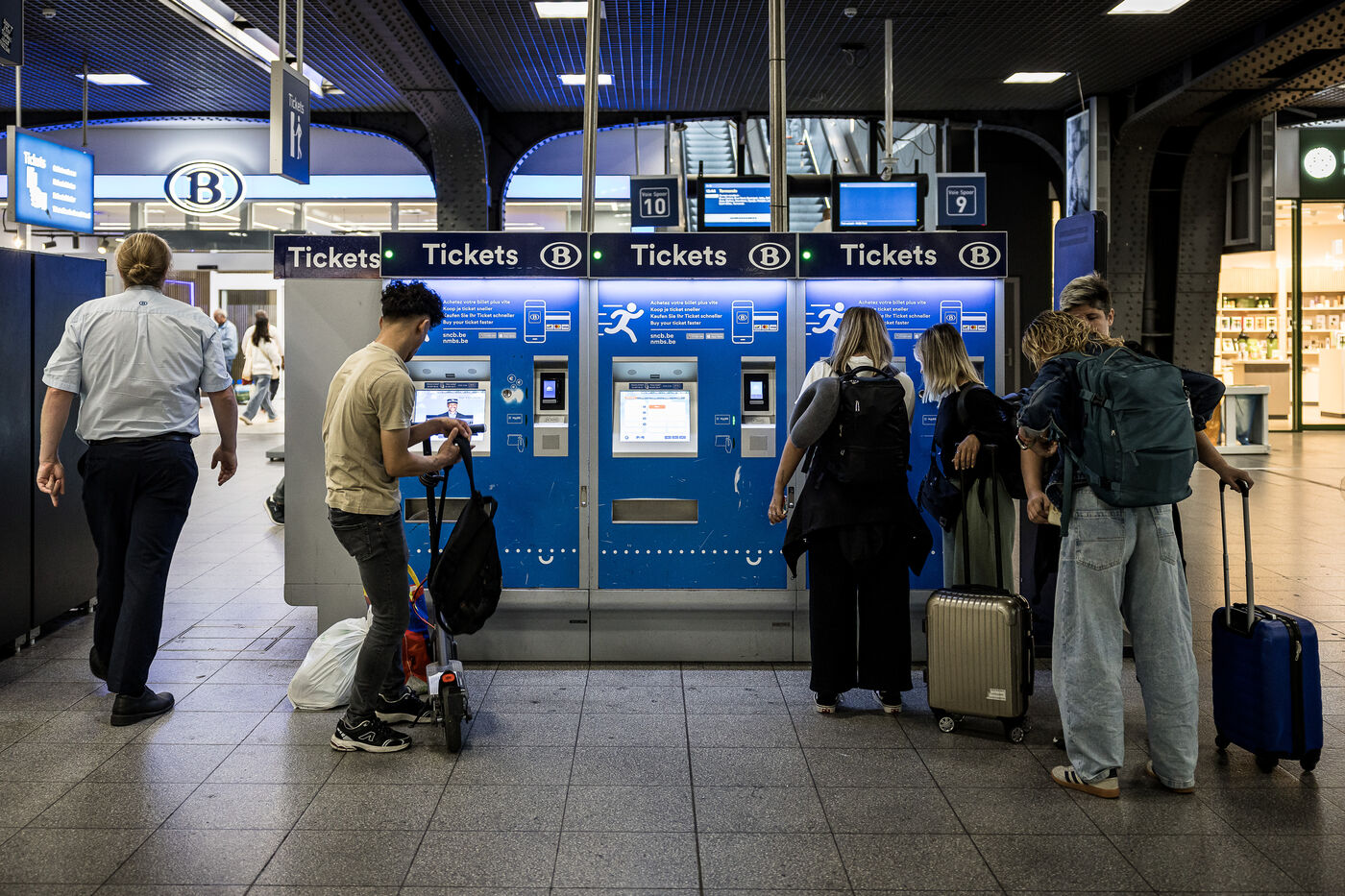 Dans les grandes gares de la capitale comme Gare Centrale ou Gare du Midi, les guichets de la SNCB commencent aussi a se fermer, remplaces par des Travel Store et des bornes automatiques a Bruxelles, Belgique, 20 Aout 2025.