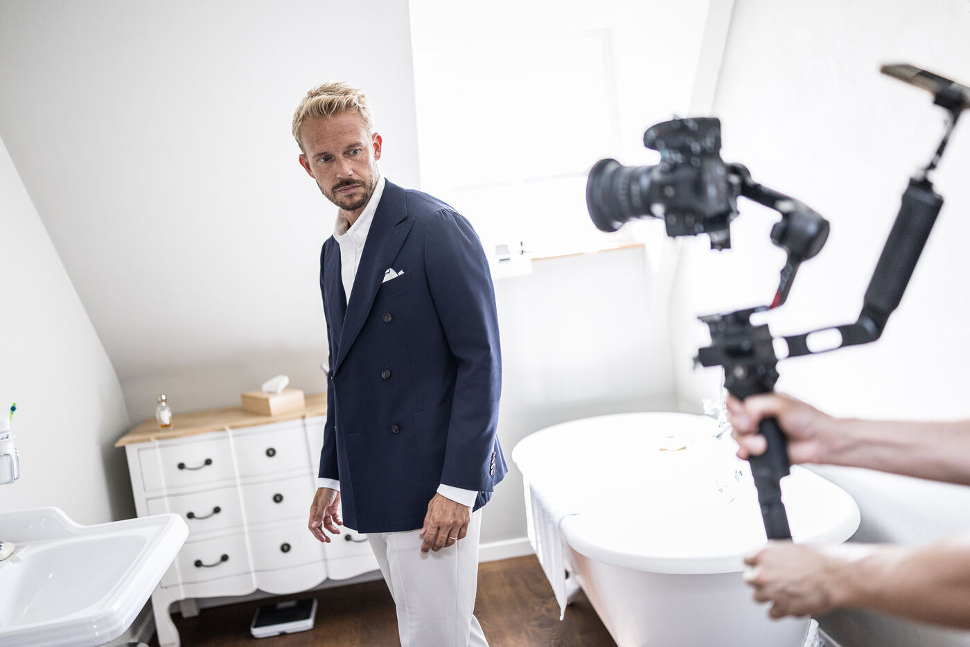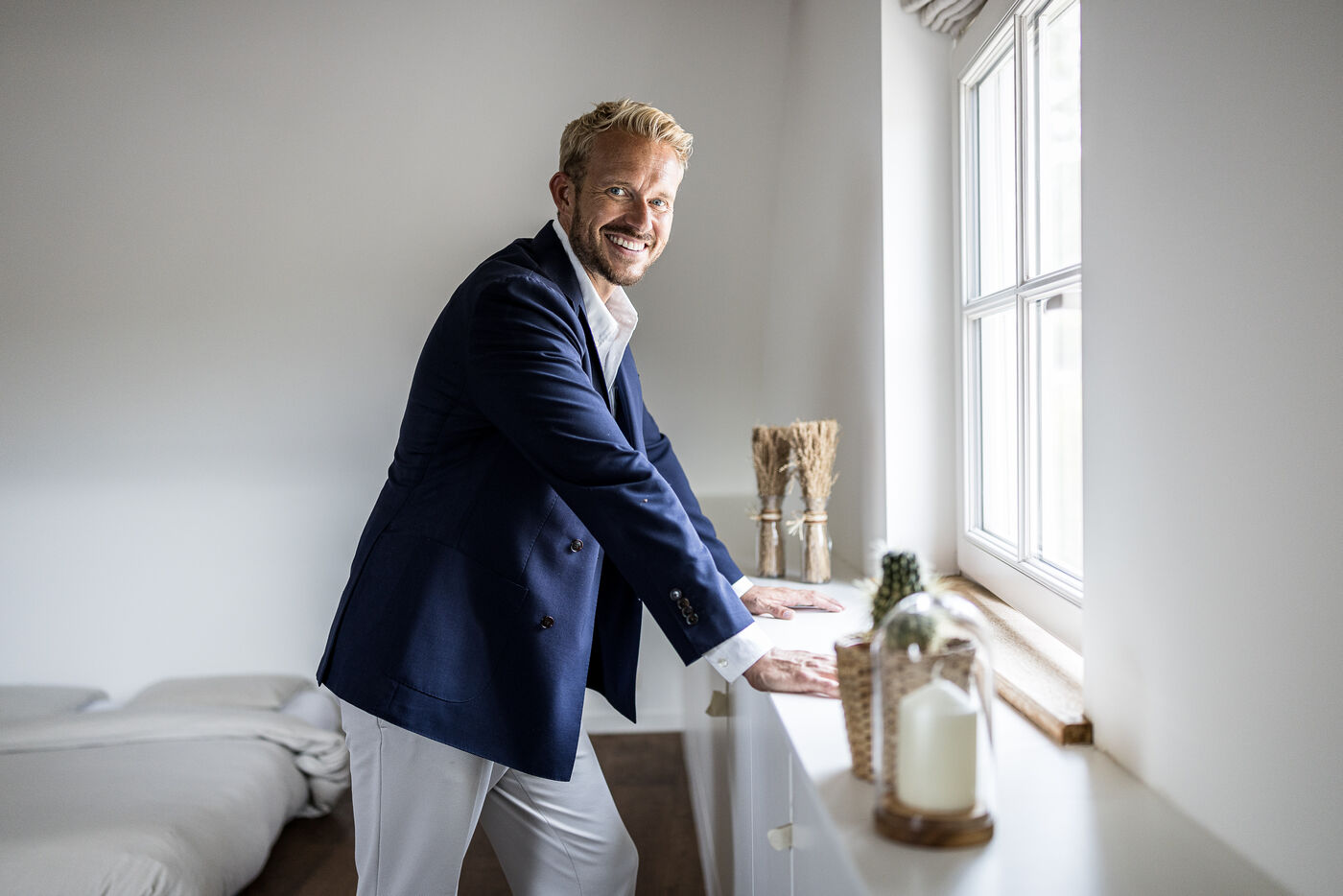 Portrait de Nicolas Godard, influenceur immo belge francophone de l agence Trust Real Estate a Grez-Doiceau, Belgique, 14 Aout 2025.