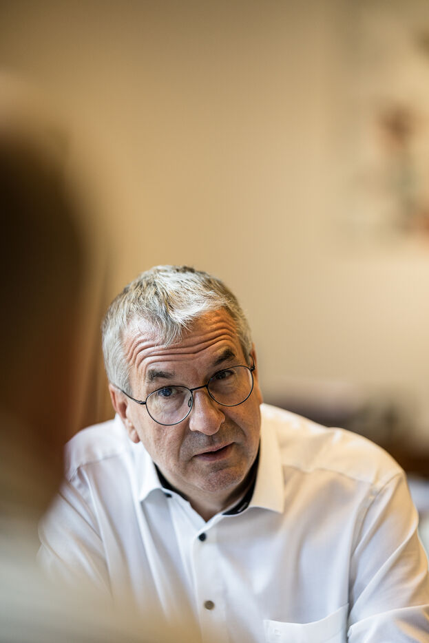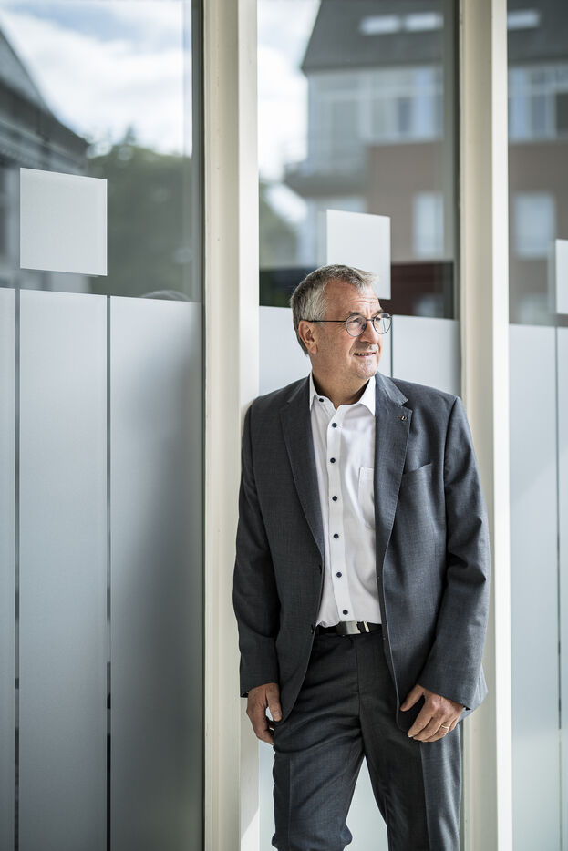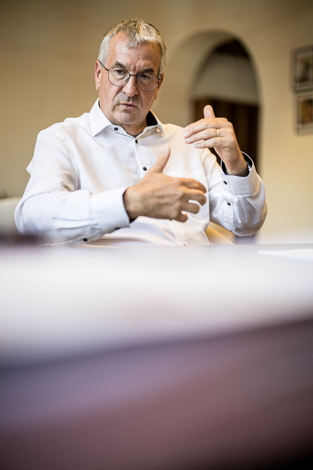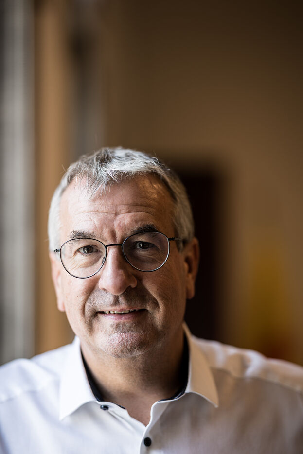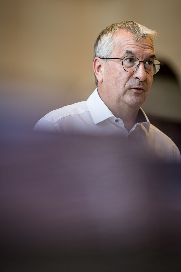 Portrait of Pierre-Yves Jeholet, Vice President and Minister of Economy, Industry, Digital Technology, Employment, and Training in Namur, Belgium, July 16, 2025.