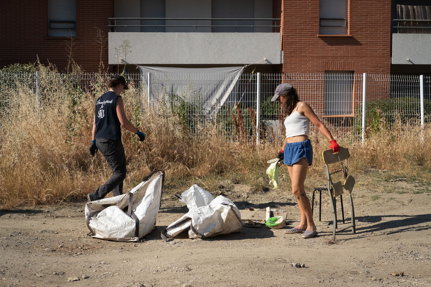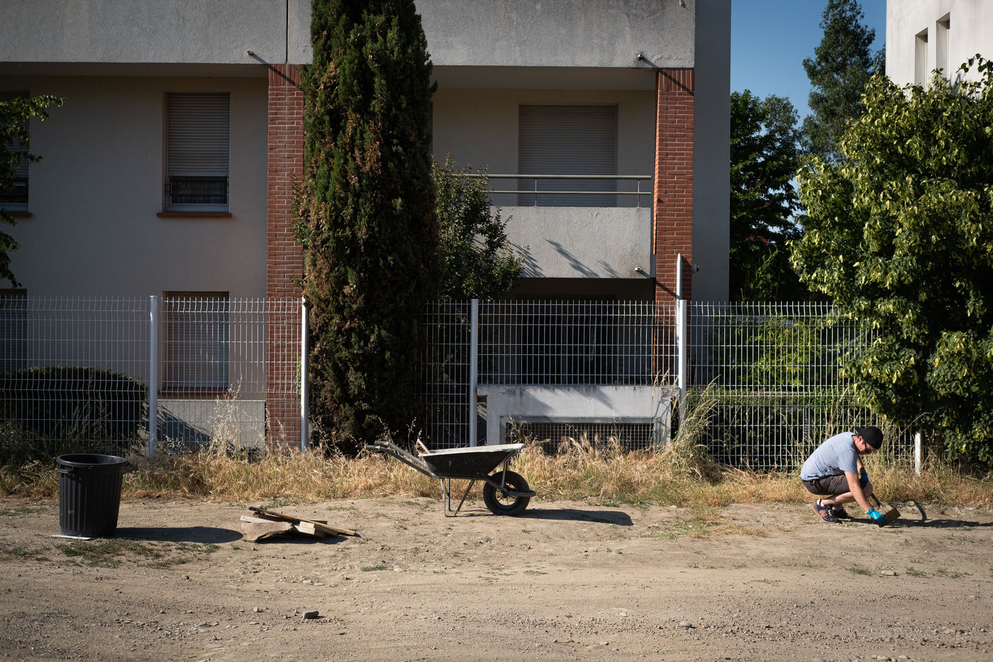 La chaleur est encore écrasante en cette fin de journée du début du mois de juin. Un petit groupe s'affaire doucement à ramasser détritus et vieilles carcasses de chaise qui jonchent le sol poussiéreux de ce qui était, il y a encore quelques jours, un parking délabré. Cette parcelle en friche, autrefois maraîchère, située dans le quartier prioritaire des Izards-Trois Cocus à Toulouse, fait l'objet d'un projet pilote mené par une toute jeune association, Pousses Ô Abris. Cette dernière envisage d'y installer une pépinière avec l'aide de citoyens concernés et d'habitants du quartier. Un retour à la terre en somme. Avant les premières semences de plantes sauvages comestibles et d'angrais verts, il s'agit de nettoyer la parcelle et d'étaler 90 tonnes de broyat végétal pour rendre le sol à nouveau fertile.