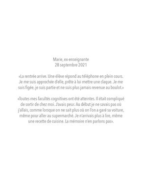 This series of portraits focuses on the stories of people suffering from burn-out. Sometimes overused, the term “burn-out syndrome” refers to a set of physical and psychological symptoms, and in the vast majority of cases its manifestations have repercussions that extend into the person's private life. Difficult to quantify, as it is not recognized as an occupational disease, burn-out is thought to affect between 5% and 10% of the working population in France. Over and above the factors that led to burn-out, these testimonies are marked by a breaking point, a tipping point, the day when these employees and ex-employees no longer returned to their workplace. The series also raises the question of employees' well-being, their relationship with work and the place it occupies in today's society.