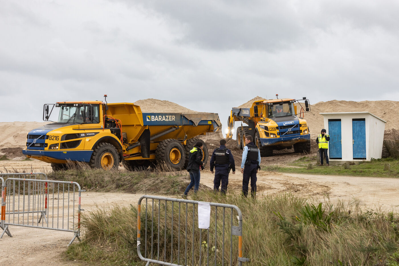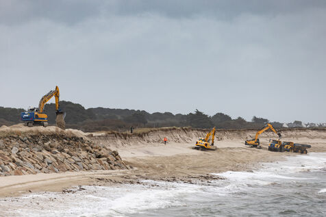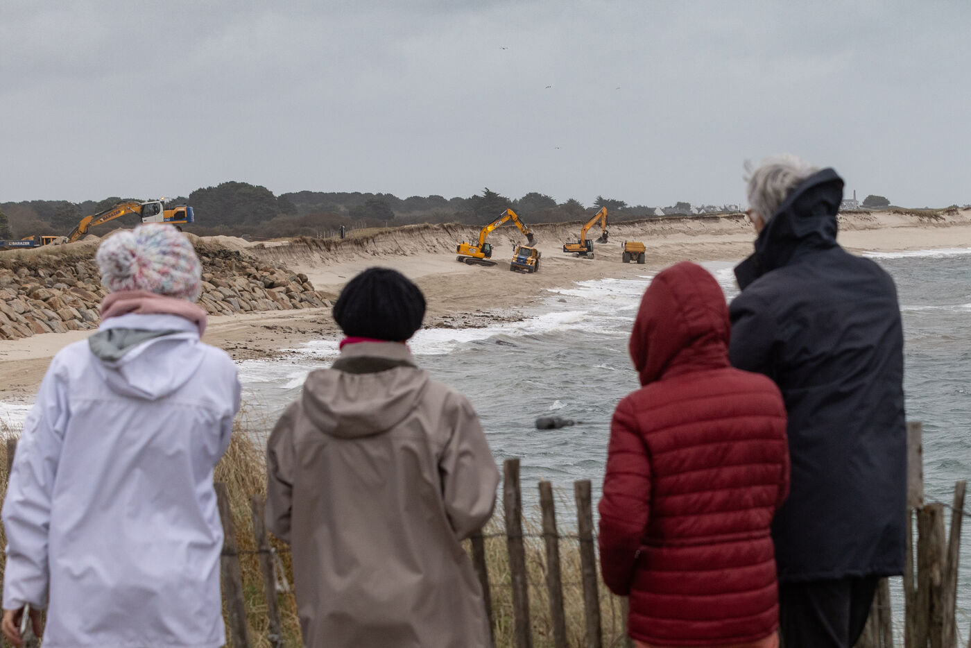 Dune reinforcement and evacuation of a neighborhood a few hours before the arrival of Storm Ciaran in Tréffiagat, a coastal commune in the south of Pays Bigouden in Finistère, Brittany. A strong south-westerly wind is forecast from the evening, and very high swells with potentially submersive waves are expected overnight. The department is under red alert for marine submersion and strong winds. By municipal and prefectoral decree, some of the residents of the Léhan neighborhood, located directly behind the weakened dune, have been evacuated from their homes for the night.