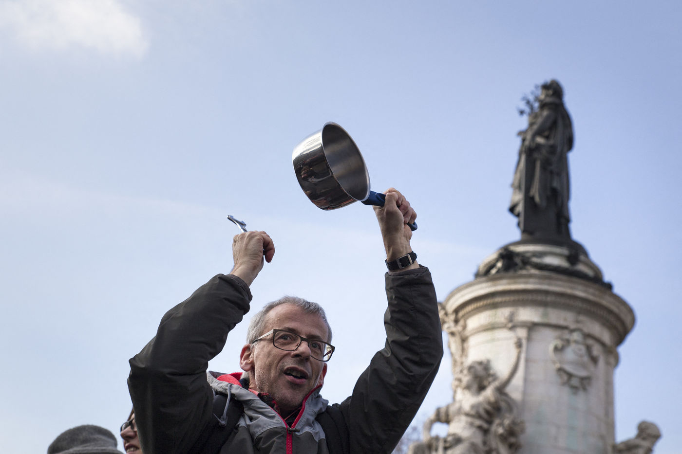 France, Paris, Place de la République. Dimanche 19 février 2017. Suite à l'affaire Penelope Fillon, plusieurs centaines de personnes se sont rassemblées pour protester contre la corruption des élus, demander la fin de leurs privilèges et une moralisation de la vie politique.