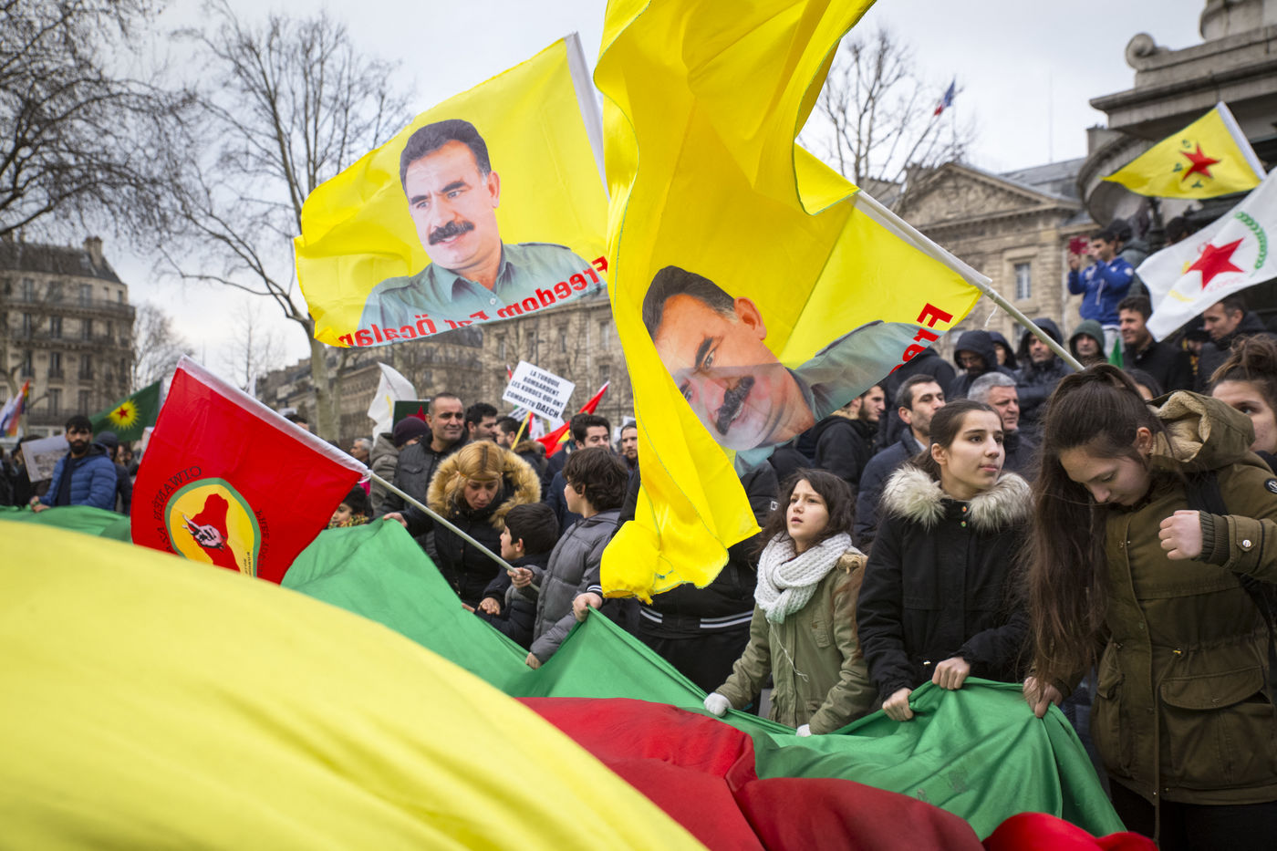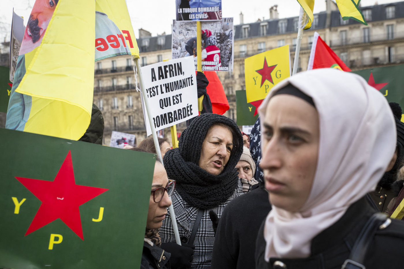 Paris, France, January 27, 2018. Demonstration of the Kurdish community to denounce the aggression of the Turkish army against the city of Afrin in northwestern Syria. On Saturday, January 20, Erdogan launched the military operation "Olive Branch" in this isolated canton in west of Rojava.