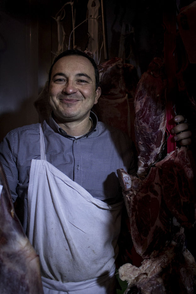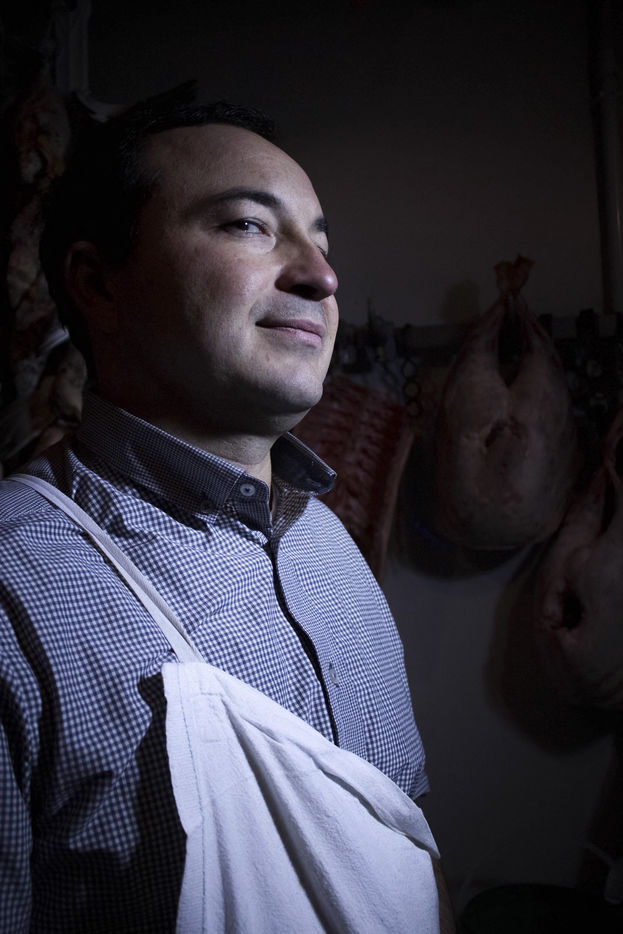 Portrait of Christophe Dru, butcher craftsman. He holds the Boucherie des Provinces, butcher-restaurant in the 12th district of Paris, near the Aligre market.