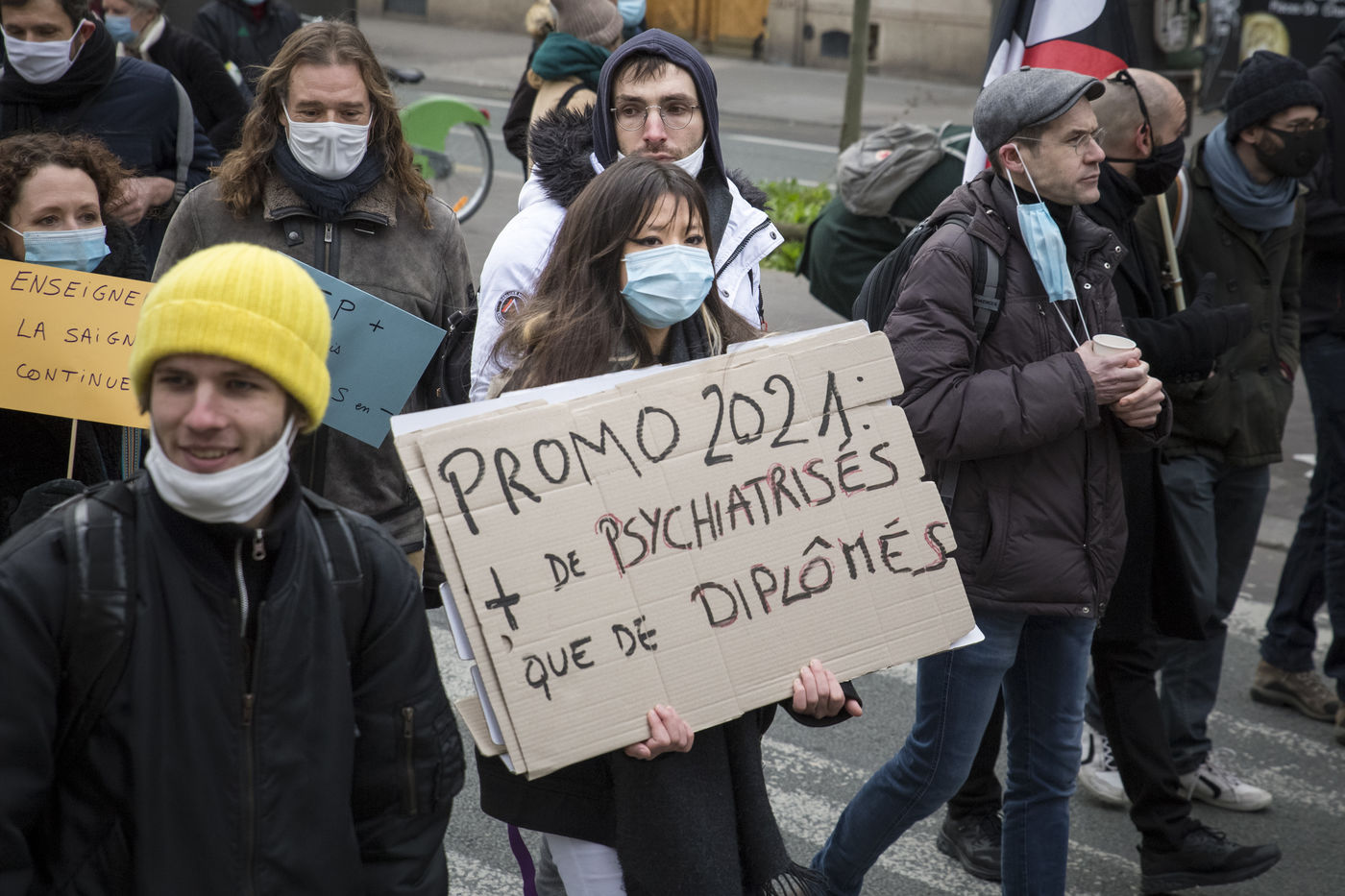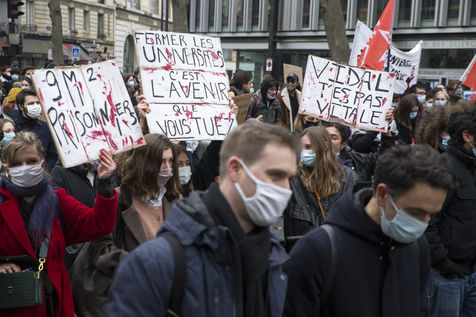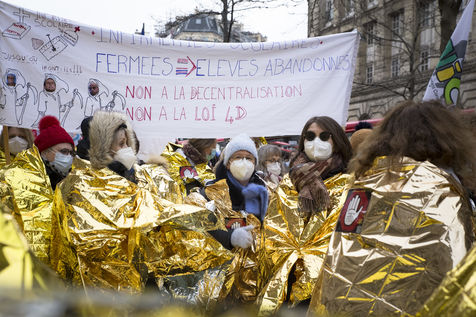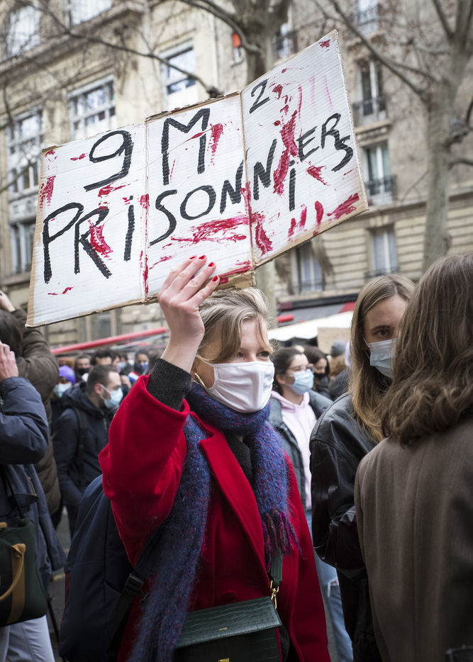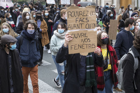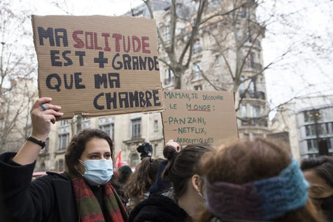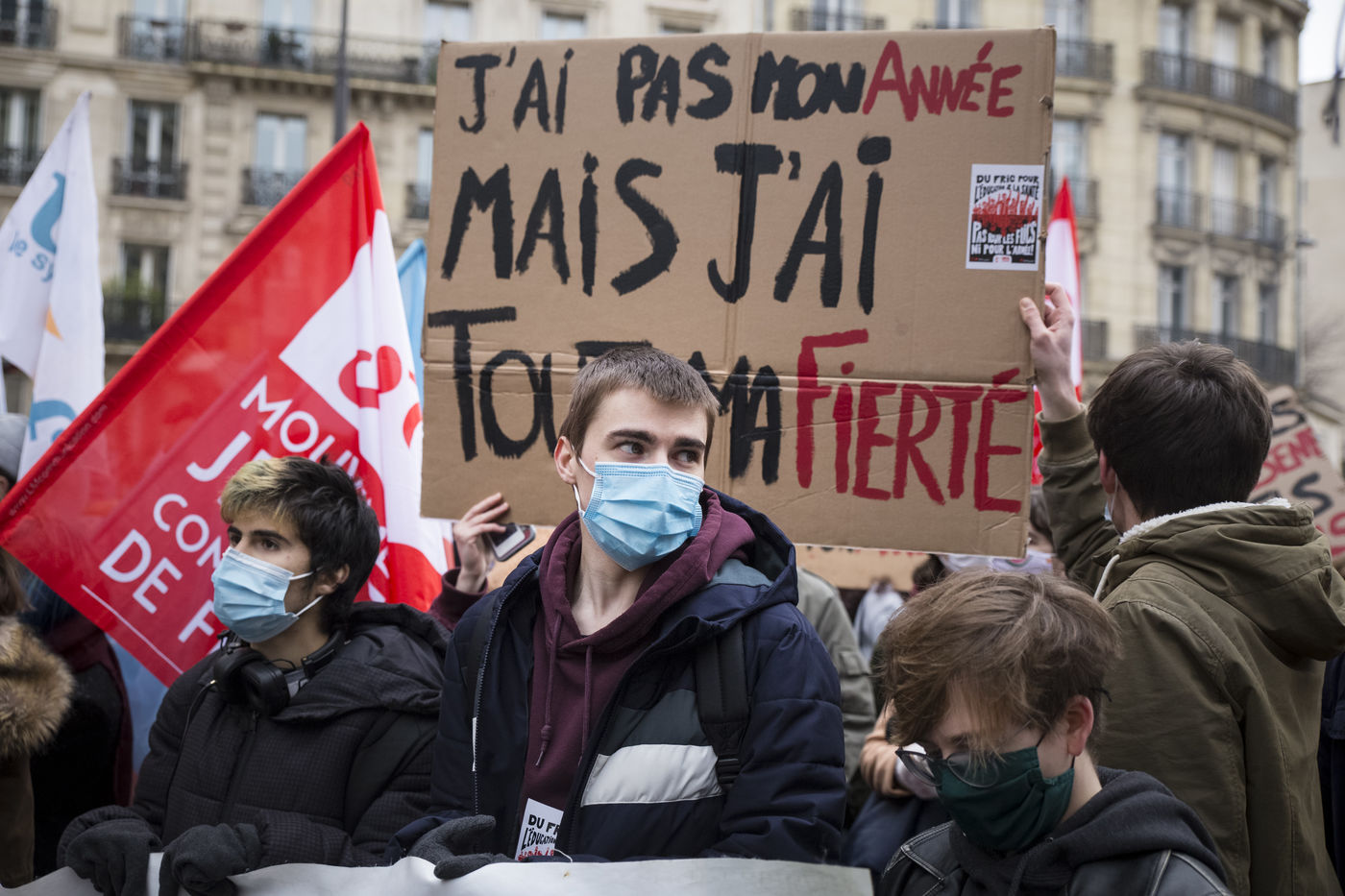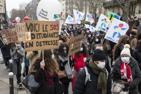 FRANCE, Paris, January 26, 2021. Inter-union demonstration (FSU, FO, CGT, SUD, SNLC, Snalc), of the staff of the National Education to denounce his working conditions, still degraded with the pandemic of Covid-19. Teachers, students and parents of students drew attention to the precariousness and student distress in the management of this health crisis.