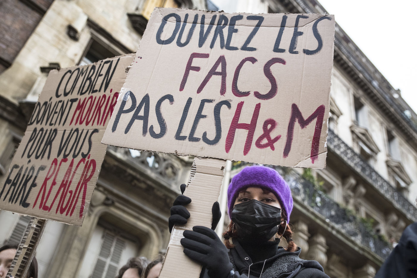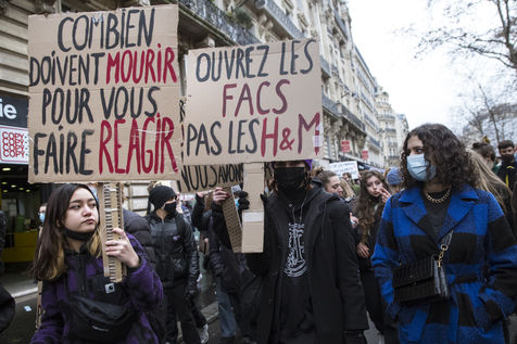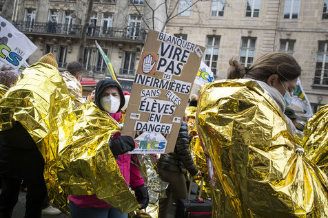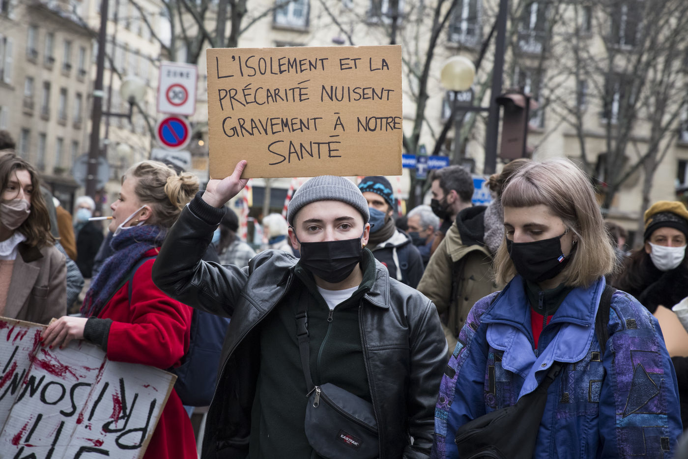 FRANCE, Paris, January 26, 2021. Inter-union demonstration (FSU, FO, CGT, SUD, SNLC, Snalc), of the staff of the National Education to denounce his working conditions, still degraded with the pandemic of Covid-19. Teachers, students and parents of students drew attention to the precariousness and student distress in the management of this health crisis.