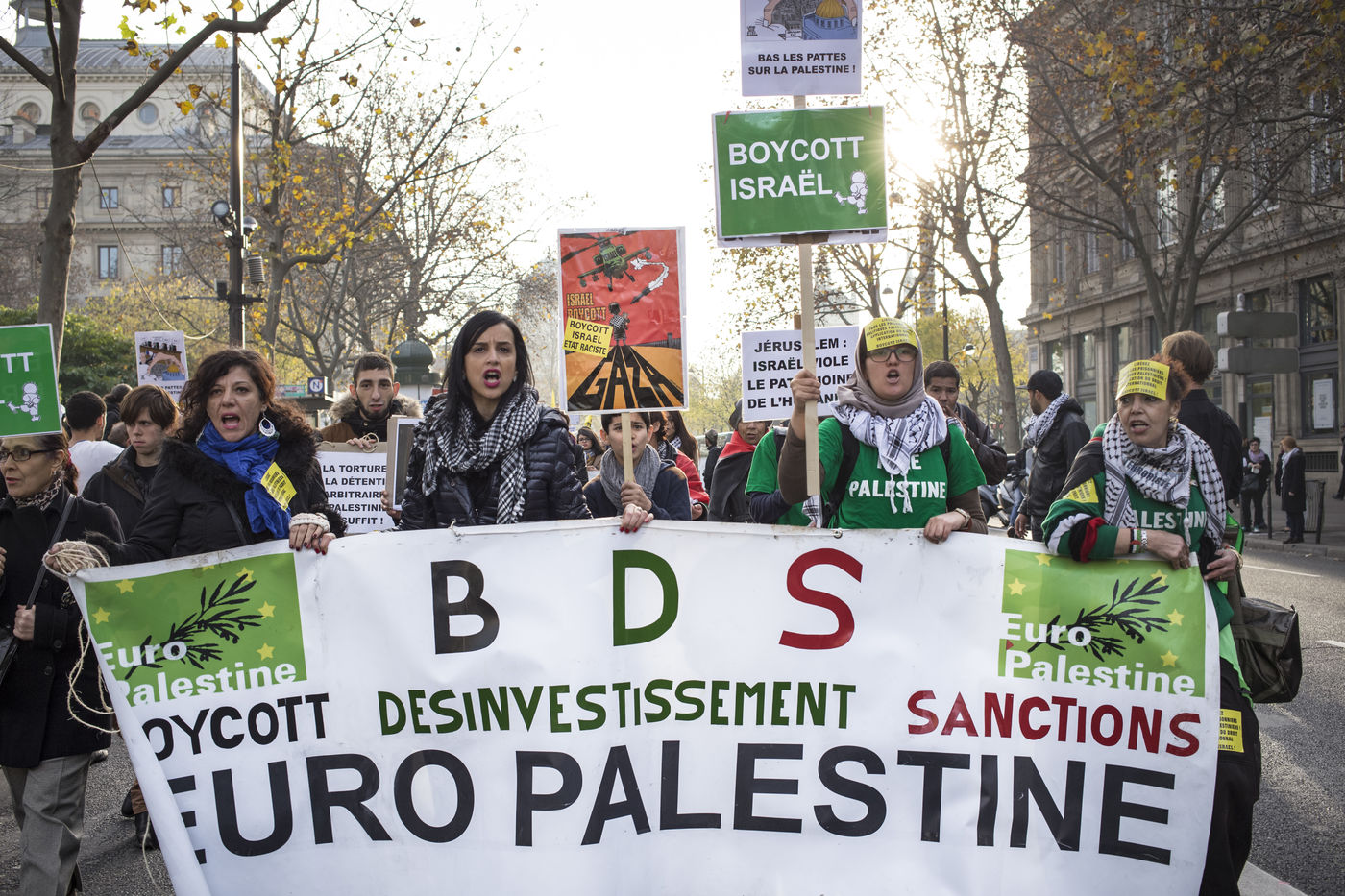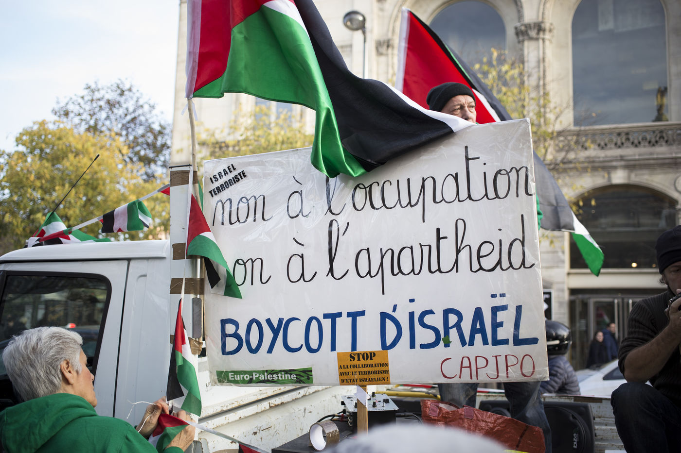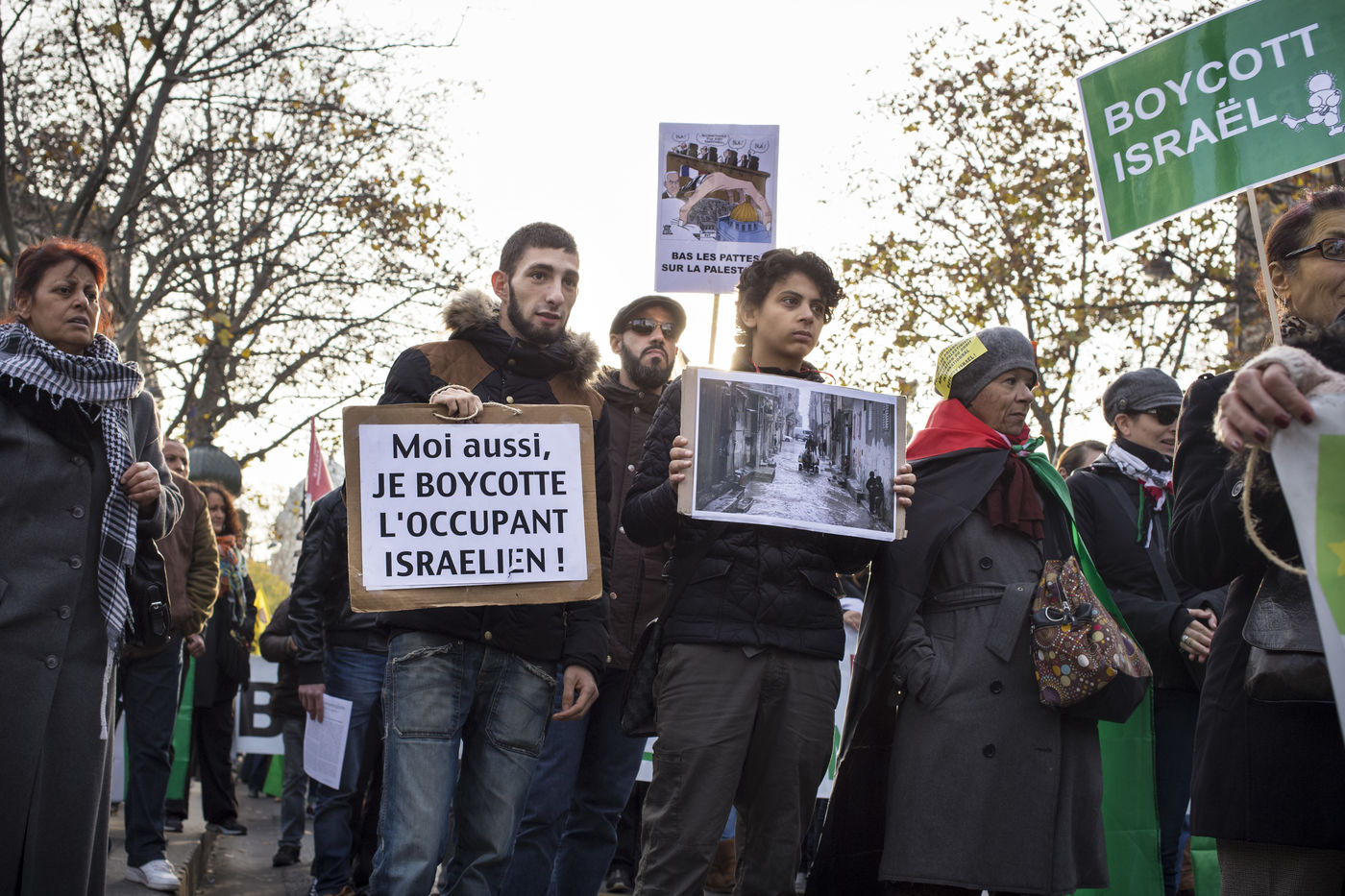 Demonstration on the occasion of the international day of solidarity with Palestine. The procession left the place du Chatelet and joined at the end of the demonstration the dozens of people gathered at the place de la Republique for this day.