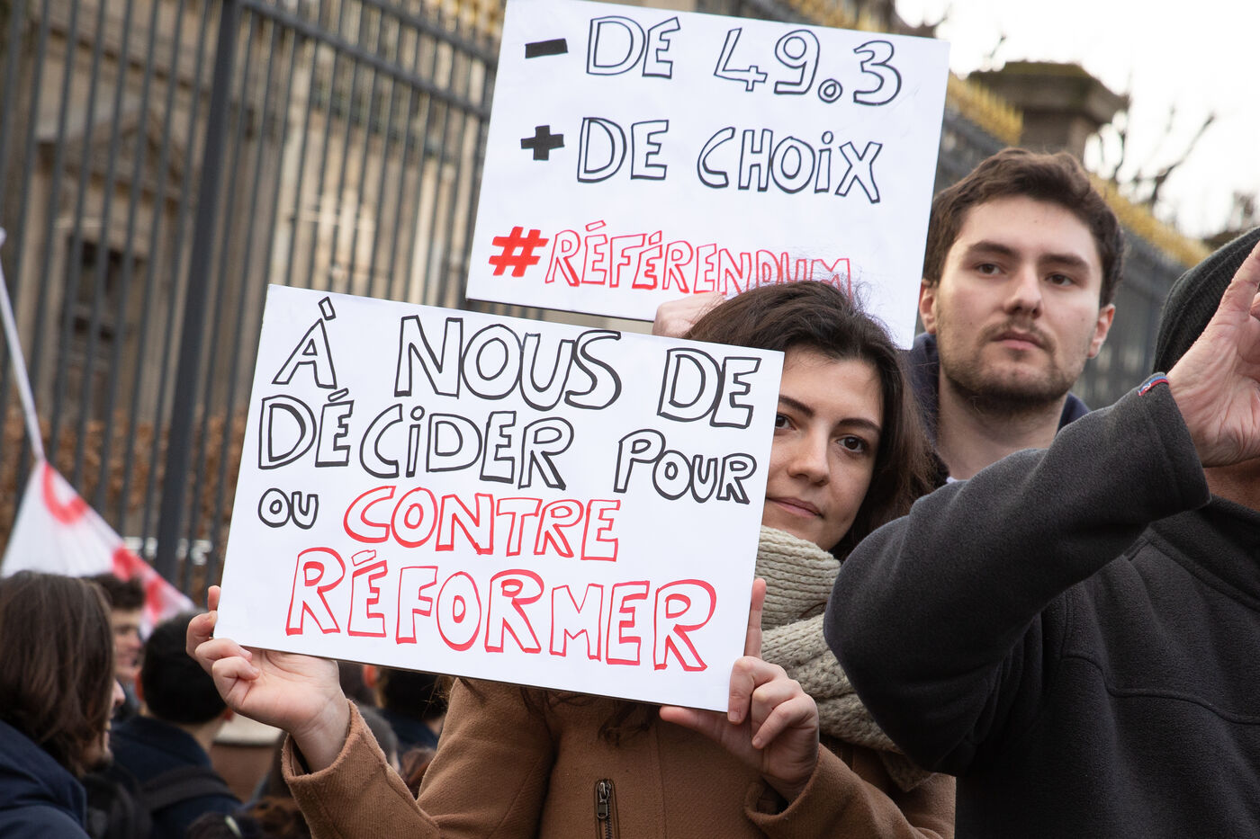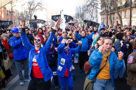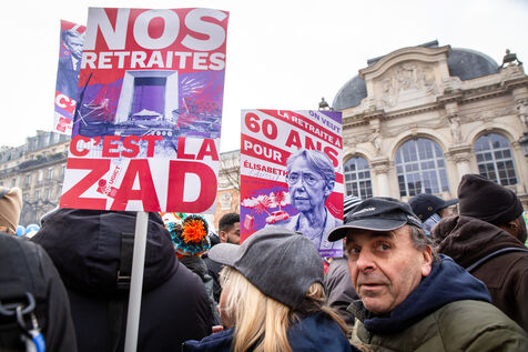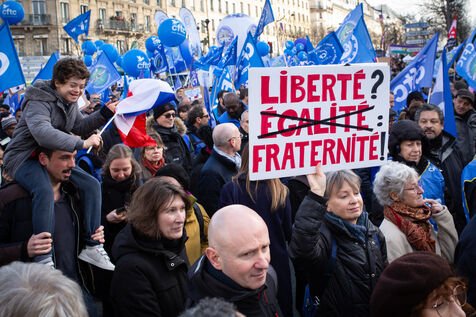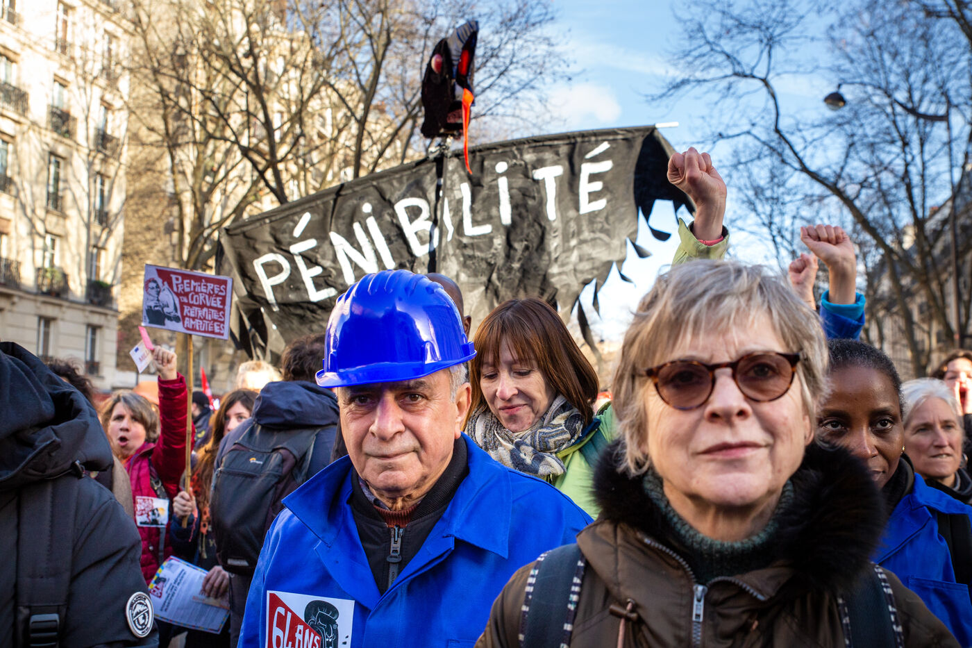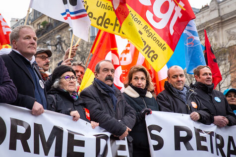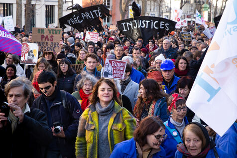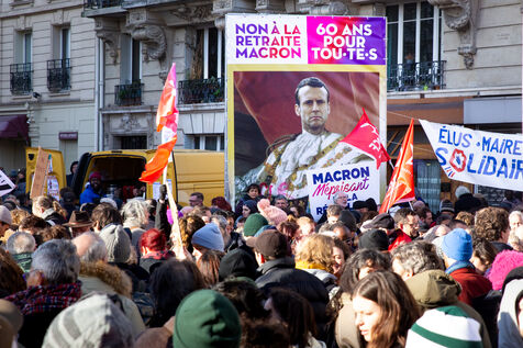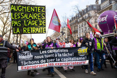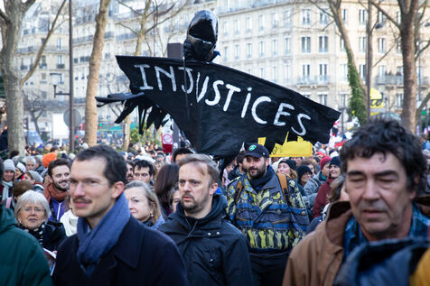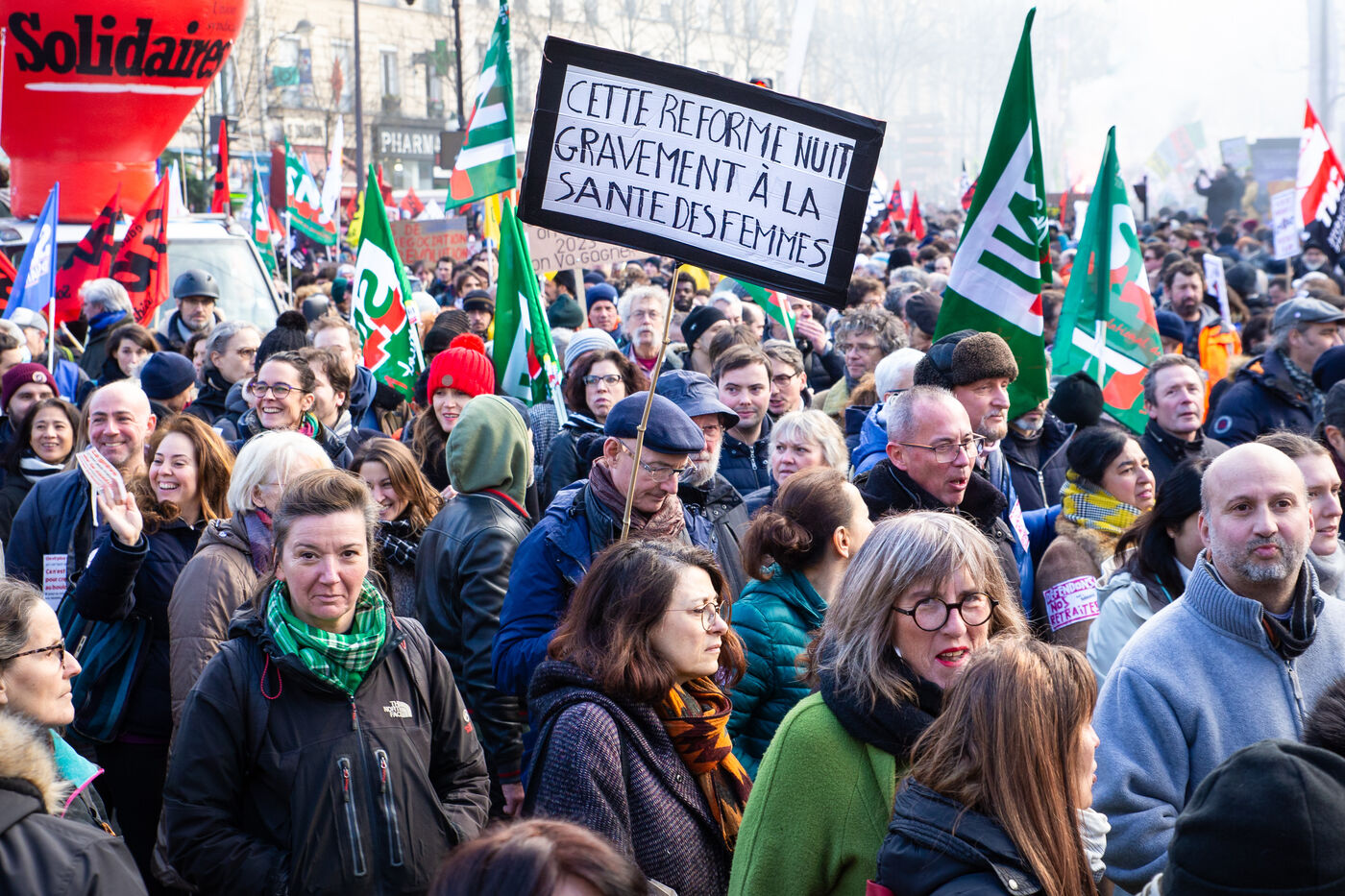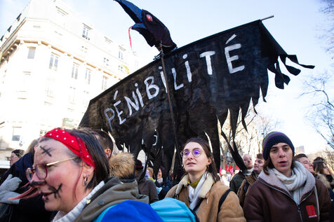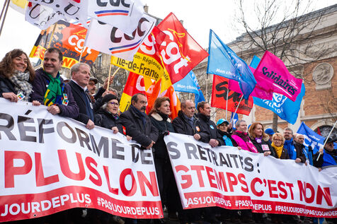 France, Paris, January 31, 2023. Parisian demonstration against the pension reform. Second day of inter-union mobilization against the reform carried by Elizabeth Borne and her government. The demonstrators protest against the postponement of the legal retirement age to 64 years and the acceleration of the increase in the contribution period.