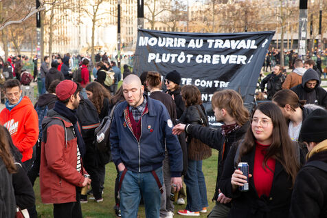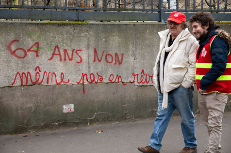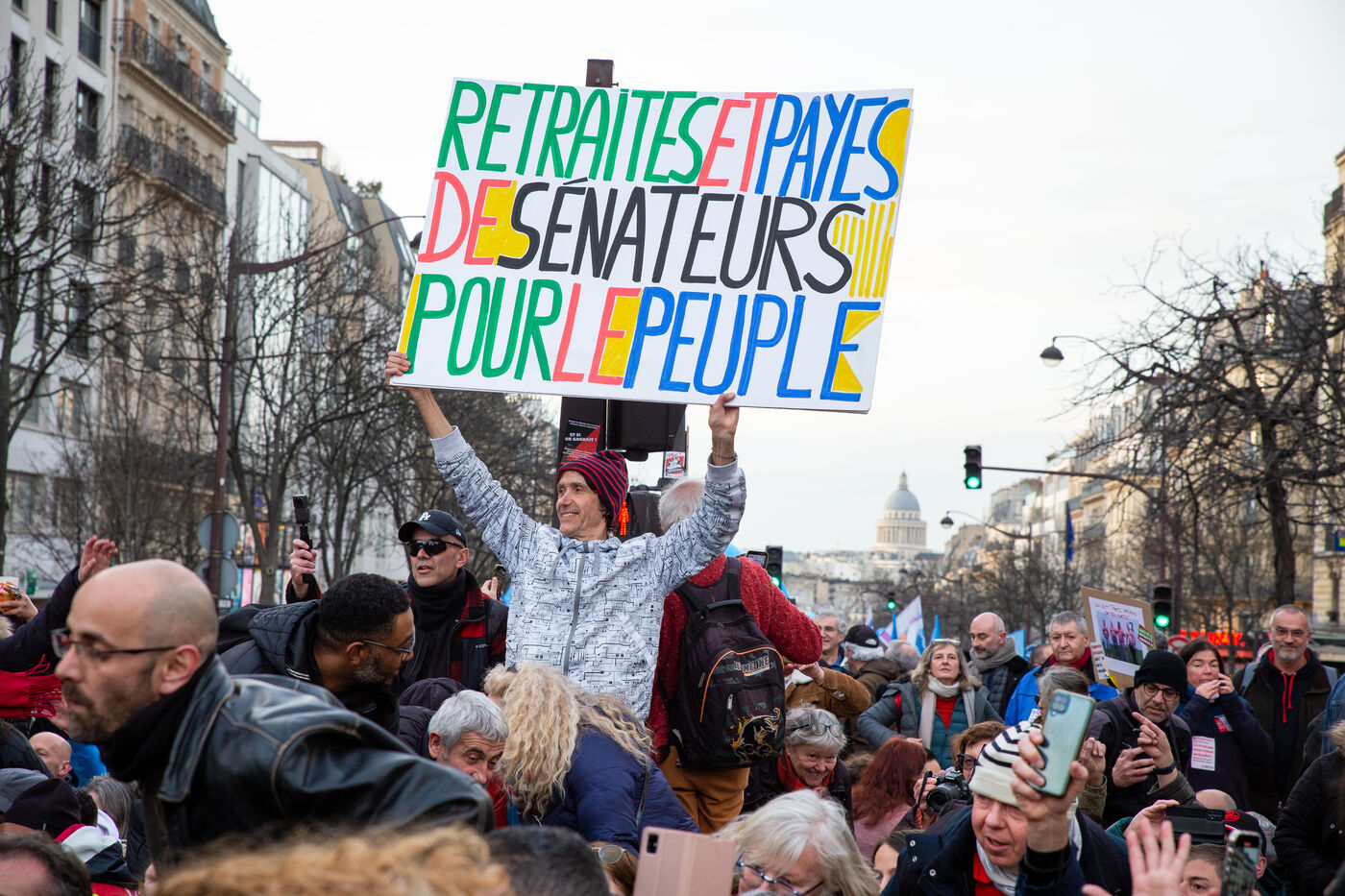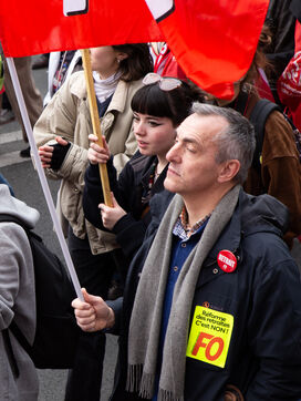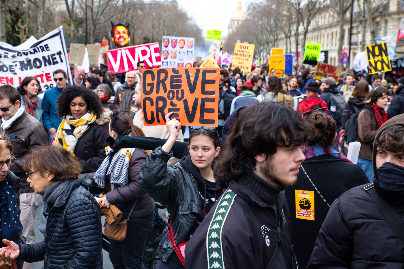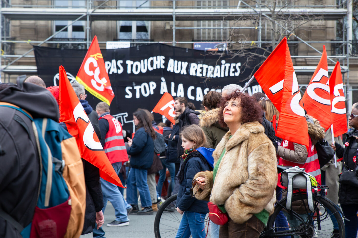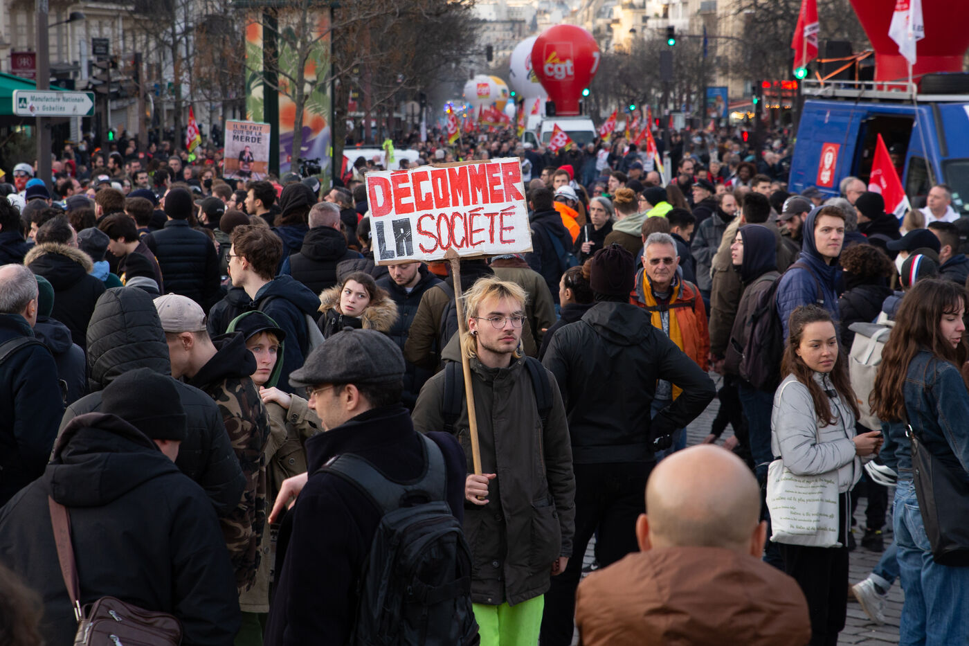 France, Paris, March 15, 2023. Parisian demonstration against the pension reform. Eighth day of mobilization against the reform of the pension system by Elizabeth Borne and her government. The demonstrators are protesting against the postponement of the legal retirement age to 64 years and the acceleration of the increase in the contribution period.