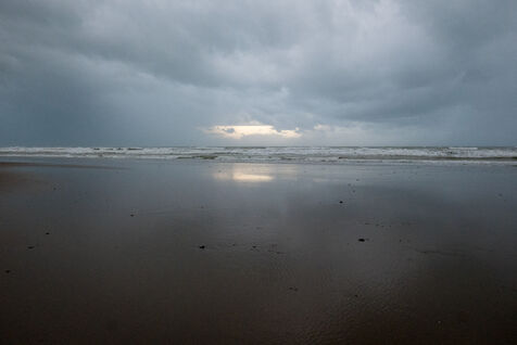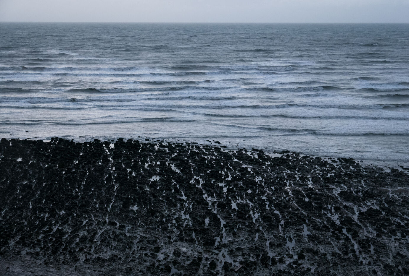 France, Ault, 18/10/2020. Illustration marine, minerale et aquatique, par jour de grand vent, depuis la plage d'Ault dans la Somme.