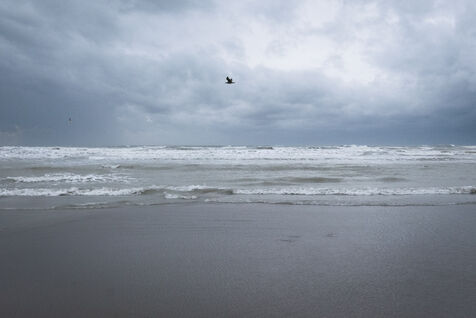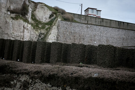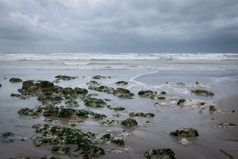 France, Ault, 18/10/2020. Marine, mineral and aquatic illustration, on a windy day, from the beach of Ault in the Somme.