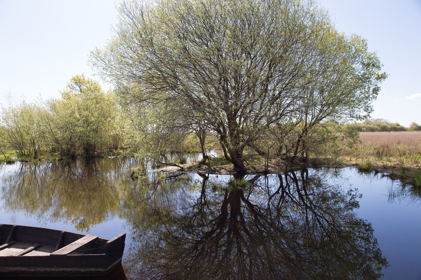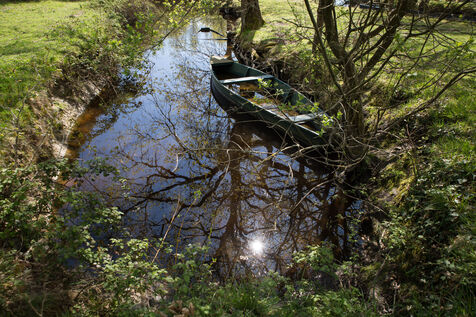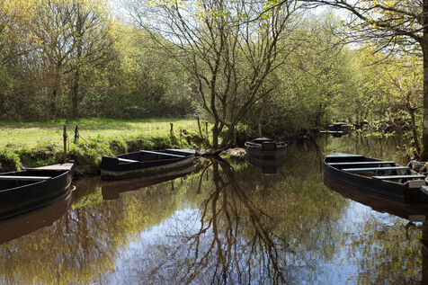 France, Loire-Atlantique, Port de Bréca in Saint-Lyphard, gateway to the Brière marshes. 18/04/2016. The Brière marshes regional nature reserve is a mosaic of canals (les curées), shallow lakes (les piardes and les copis), reedbeds, flood meadows and hillocks. The avifauna and flora are rich and varied, and most species of freshwater fish can be found here. It is the second largest marsh in France (70 km²) after the Camargue. Another special feature is the special legal status of the Grande Brière Mottière marsh. It is the undivided property of the inhabitants of the 21 riverside communes. This ownership was proclaimed in 1461 by Letters Patent from François II, Duke of Brittany, and even today, the Briérons continue to manage their marsh themselves.