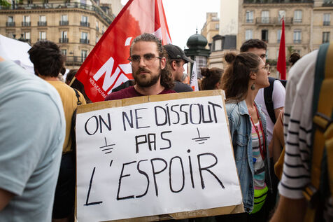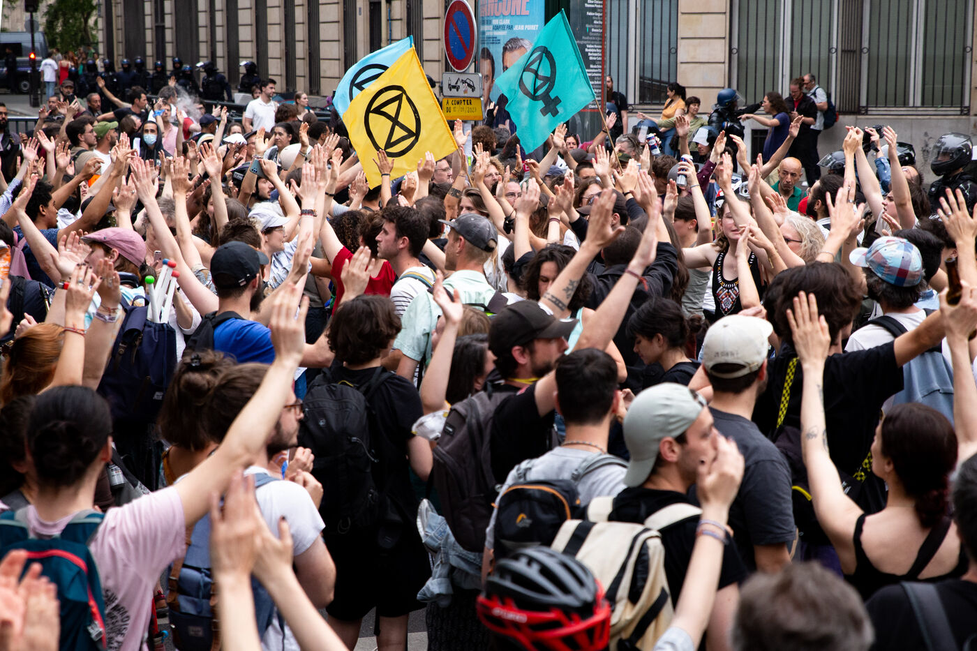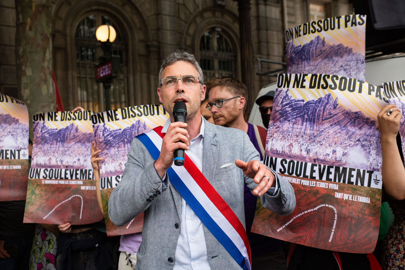 France, Paris, Hotel de Ville, Wednesday June 21, 2023. Rally in support of the collective Les Soulevements de la Terre, following the announcement of its dissolution by the Council of Ministers on the same day.
