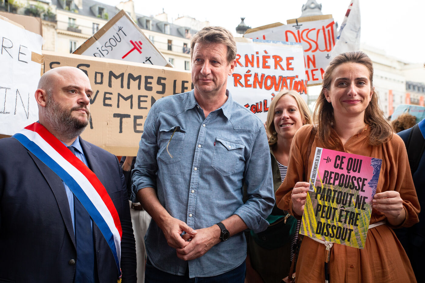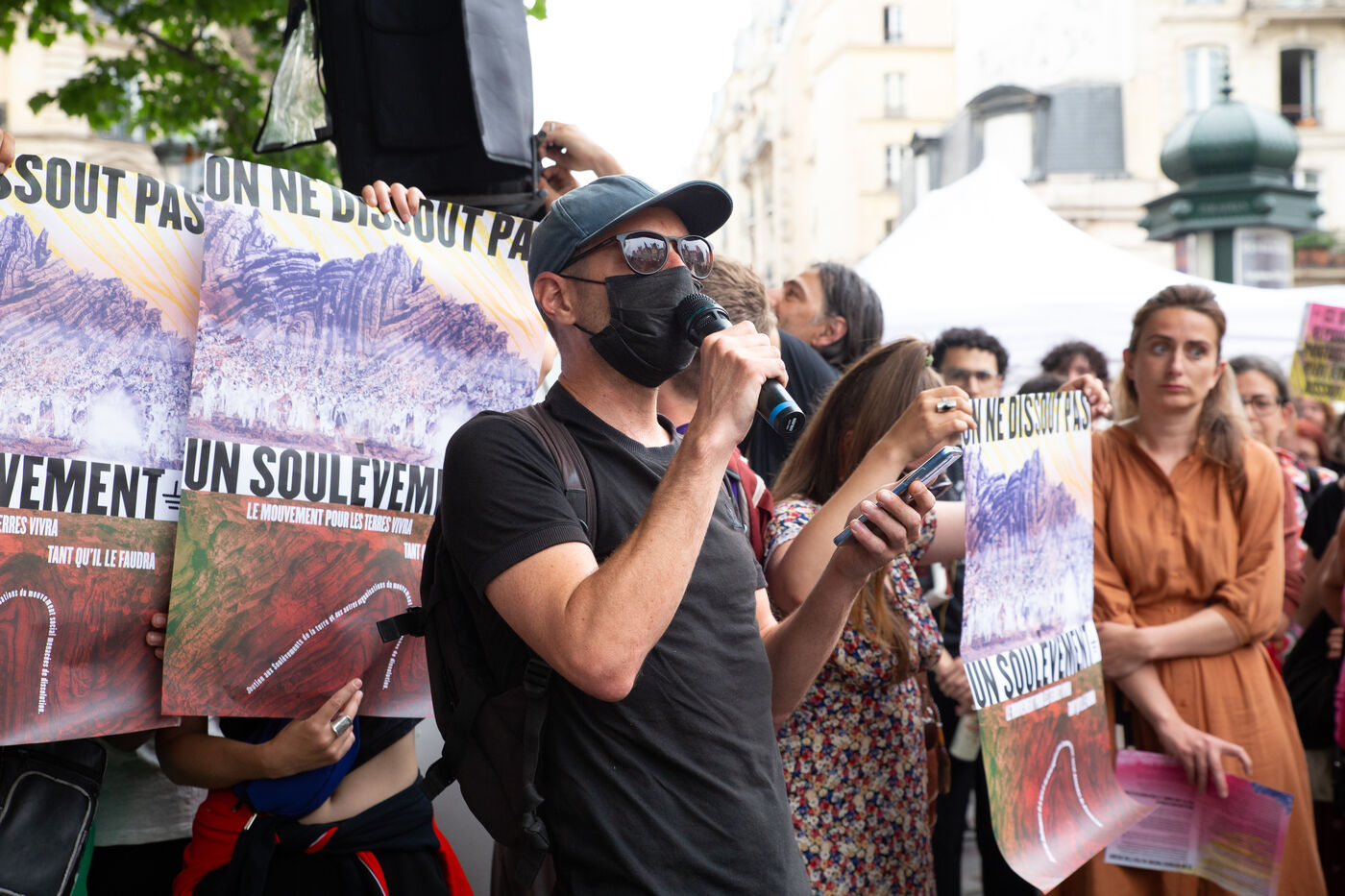 France, Paris, Hotel de Ville, le mercredi 21 juin 2023. Rassemblement en soutien au collectif Les Soulevements de la Terre, suite a l?annonce de sa dissolution, en Conseil des Ministres le même jour.