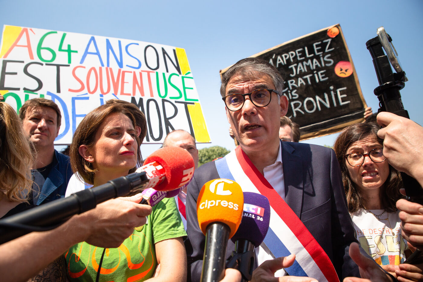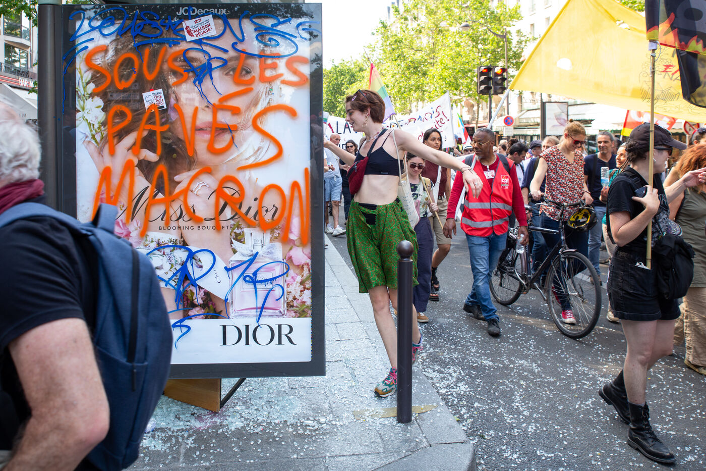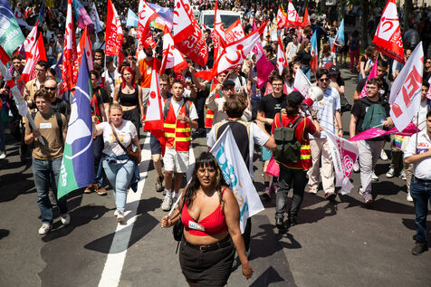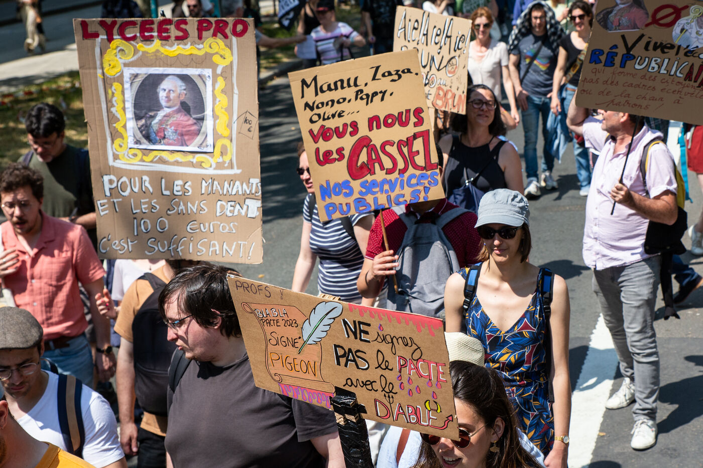 France, Paris, June 6, 2023. Paris demonstration against pension reform. Fourteenth day of inter-union mobilization against the pension reform proposed by Elizabeth Borne and her government. Demonstrators protest against the postponement of the legal retirement age to 64 and the acceleration of the increase in the contribution period.
