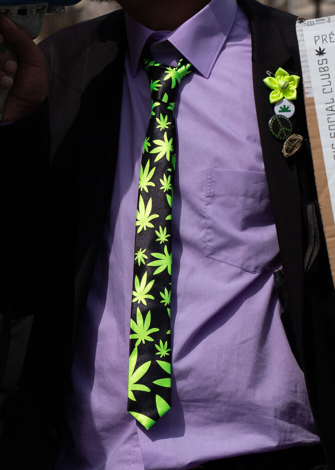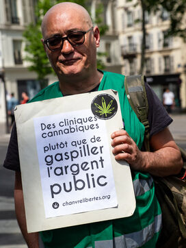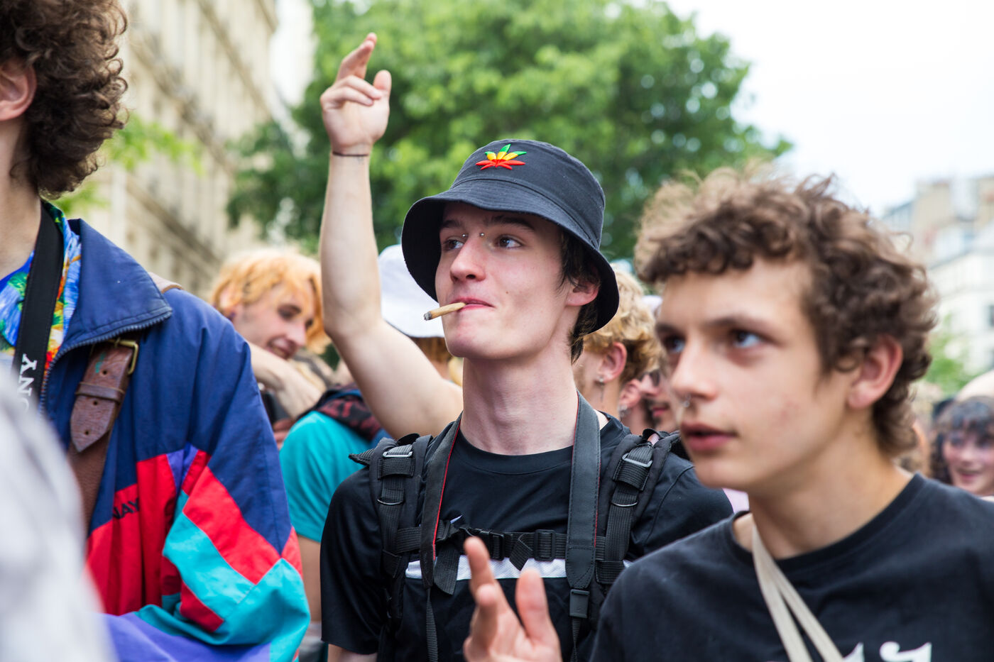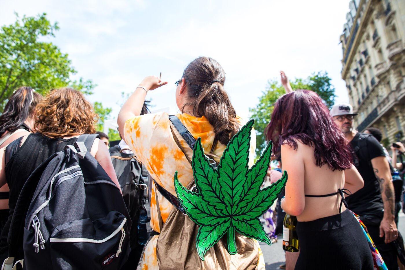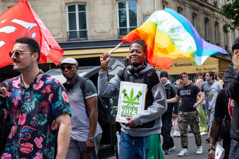 France, Paris, May 27, 2023. Cannaparade 2023. Supporters of drug law reform marched from Place de la République to Place de la Bastille, demanding alternatives to prohibition in order to liberate cannabis. They demanded: decriminalization of use, a national public debate, authorization for therapeutic cannabis, prevention without stigmatization, the possibility of self-production and Cannabis Social Clubs.