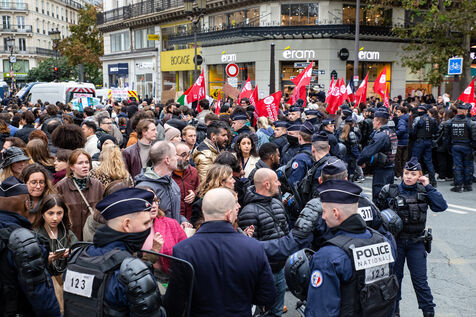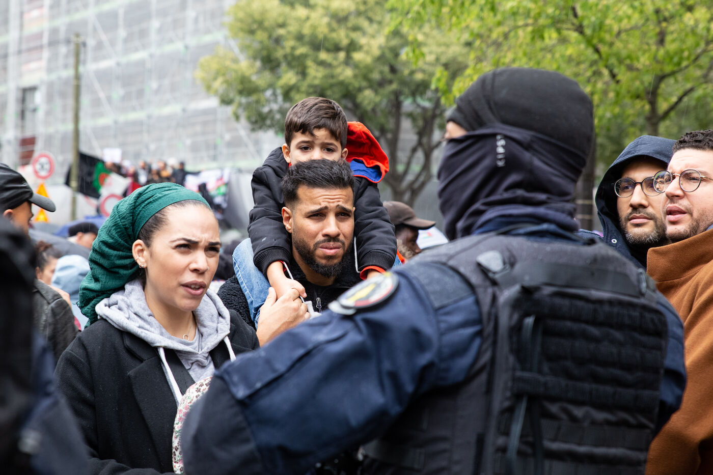 France, Paris, October 28, 2023. Gathering in support of the Palestinian people, forbidden by the Prefecture de Paris in the context of an emergency attack alert in France. The demonstrators, who had come to demand an end to Israel's military intervention and bombardment of Gaza, were quickly caught in a trap.